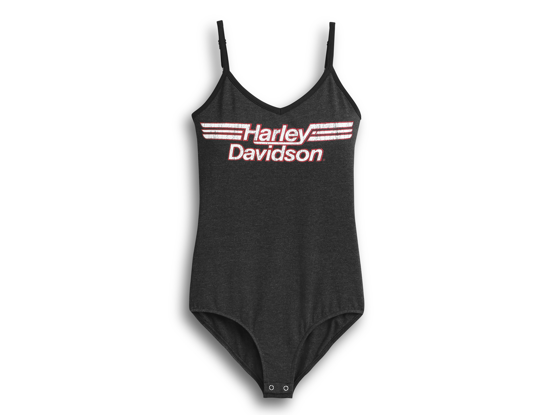 Der Striped Logo Bodysuit darf in Ihrer Sommergarderobe auf keinen Fall fehlen. Die Grafiken sorgen für Retro-Flair, während die schmalen Träger für eine individuelle Passform verstellt werden können. Stylen Sie dieses ärmellose Damenoberteil auf individuelle Art - zu Jeans, Shorts oder einem Rock. 56% Baumwolle, 37% Polyester, 7% Elasthan.