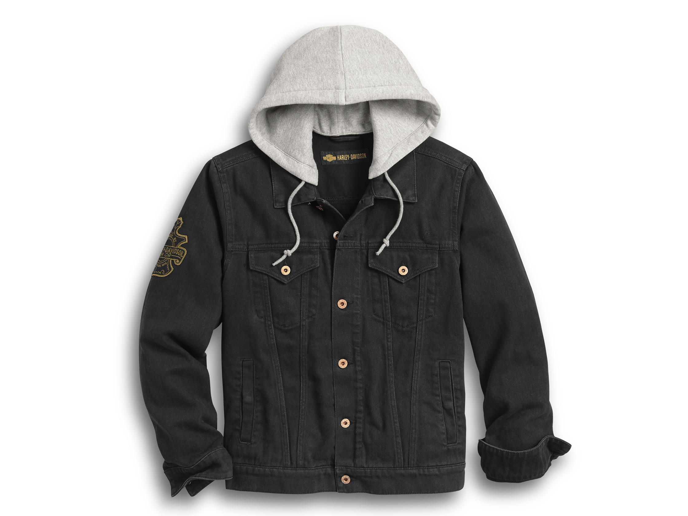 Die Skull Flag Denim Jacket verbindet klassisches Design mit legendären Motiven aus der Motorradszene. Der übergroße Aufnäher ist mit groben Stichen umrundet, die ihm authentisches Retro-Flair verleihen und ihn besonders langlebig machen. Außerdem verfügt diese legere Herrenjacke über eine abnehmbare Kapuze mit Druckknöpfen, die für eine Layering-Optik sorgt. Der perfekte vielseitige Begleiter für jede Saison. 100% Baumwolle. Passform: Slim Fit.