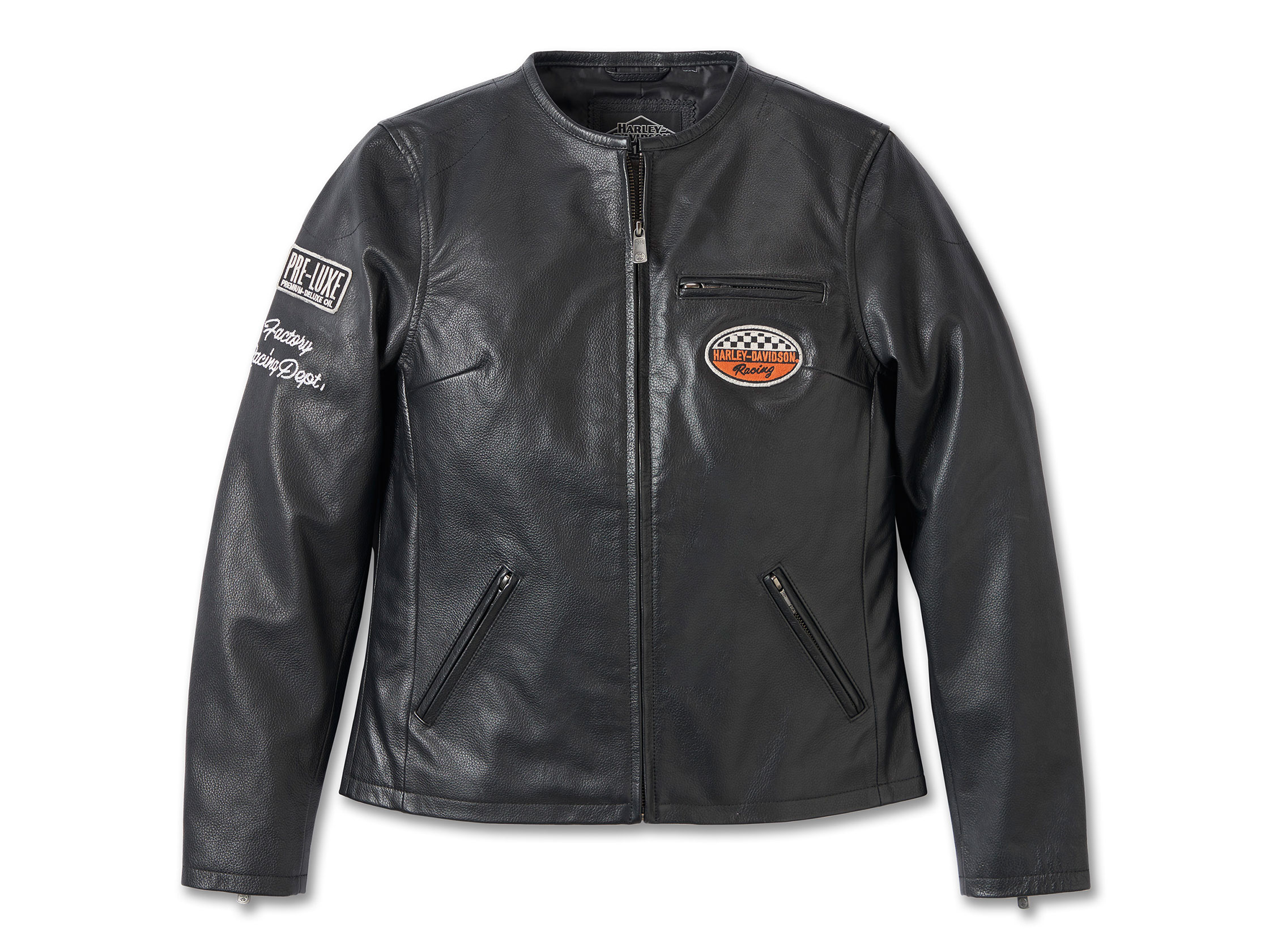 Die Limited Edition 120th Anniversary Café Racer Lederjacke ist eine überaus modische Hommage an die langjährige Geschichte von Harley-Davidson®. Das mittelschwere Rindsleder hat klare Linien und eine geschmeidige Haptik mit stilvollen Details wie einem gerollten Kragen, einer abgewinkelten Passe, dekorativen Absteppungen und Brustabnähern, die Deiner Figur schmeicheln. Diese Lederschönheit ist mit einem speziellen Mix aus vom Rennsport inspirierten Branding versehen. Tatsächlich erinnert die Rückseite an unseren Tribut zum 200-jährigen Bestehen Amerikas im Jahr 1976 sowie an Jay Springsteens ersten AMA Grand National Championship Sieg als Fahrer des Harley-Davidson Werksteams. Dieses in begrenzter Stückzahl verfügbare Modell ist bei Rennsportfans sehr beliebt, bestelle also bald!