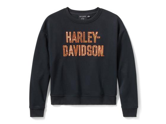 Verleihe Deinem Outdoor-Look mit unserem H-D® Realtree® APG Fleece-Pullover das gewisse Etwas. Gefertigt aus einer Fleece-Mischung aus Baumwolle und Polyester, die Dich bei sinkenden Temperaturen angenehm warm hält. Dieser Damen-Pullover mit Rundhalsausschnitt verfügt über überschnittene Schultern und Saum mit Rippstrick, um die Form zu halten. Die Rückseite ist frei gehalten, damit die authentische Applikation auf der Vorderseite alle Aufmerksamkeit auf sich ziehen kann. Dieses wunderschöne Design zeigt eine Harley-Davidson Motiv in einem Realtree APG-Muster, das Harthölzer, Kiefernwälder, Prärien und Flussläufe mit anderen Outdoor-Umgebungen verbindet. Teil des H-D Realtree APG Sortiments - einer Sonderedition, die legendäre Camouflage-Muster mit legendärer Motorradkultur verbindet.