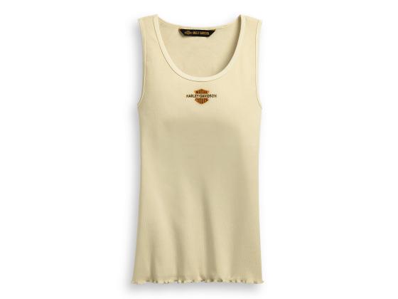 Das für die Sonne gemachte Distressed Vintage Logo Tank Top, ist bereit für die Parade, die Ausfahrt, den Strand oder das Konzert - eben Alles, was im Sommer so Spaß macht! Der klassische RippsTRICK" erhält eine verspielte abgeschnittenen bzw. ungesäumte Unterkante. Dieses ärmellose Damenoberteil erhält seine Vintage-Anmutung durch Distressed-Grafikmotiv und verwaschenen Look. Material: 100% Baumwolle.