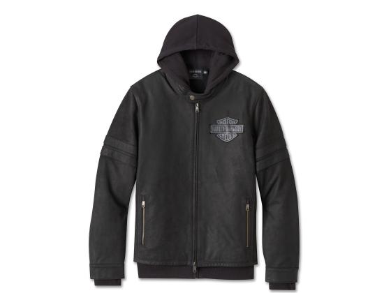 Die Enthusiast 3-in-1-Jacket vereint Stil, Funktion und Komfort. Die Jacke ist aus geschmeidigem Büffelleder gefertigt, während der abnehmbare Hoodie aus einem alltagstauglichen Baumwoll-Polyester-Fleece-Gemisch besteht. Die Funktionalität der Lederjacke zeigt sich im Action Back, den vorgeformten Ärmeln und dem gepolsterten Mandarinkragen mit Druckknopfleiste. Der Hoodie hat einen dezenten, minimalistischen Look mit Reißverschlusstaschen zum Verstauen wichtiger Utensilien. Die Jacke ist mit Lederpatches verziert, die unserem kultigsten Logo einen Used-Look verleihen. Trage die Lederjacke allein, mit dem Kapuzenpulli oder nur den Kapuzenpulli - in jedem Fall ein Muss für Roadtrips und Rallys.