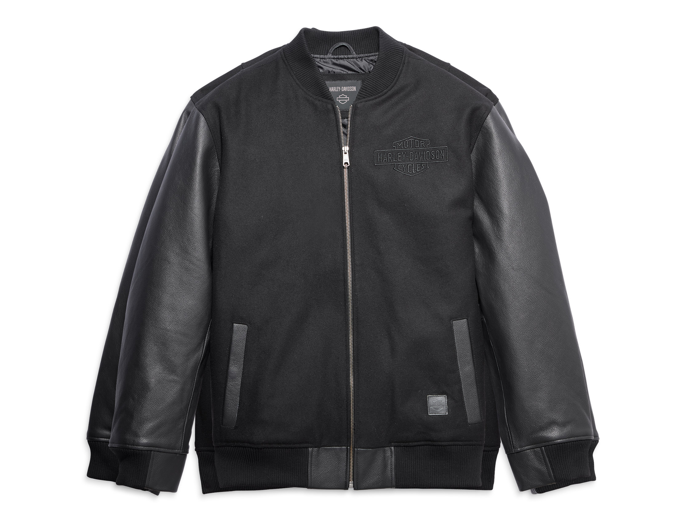 Die Harley Varsity Jacket ist eine Neuinterpretation des School Spirit Styles für Fans der offenen Straße. Sie ist in einer traditionellen und einer schmalen Passform erhältlich und besteht aus schwerem Leder und einer Poly/Wollmischung, gefüllt und gefüttert für kuschelige Wärme. Raglanärmel, Bündchen und Taschenbesatz aus Leder sorgen für einen stilvollen Kontrast. Klassisches Branding mit unserem ikonischen Logo auf der Vorderseite und unserem geschwungenen Logoschriftzug auf dem Rücken.