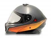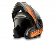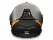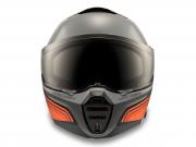 Hervorragende Belüftung, Sonnenschutz und echte Vielseitigkeit - dieser neue Helm erfüllt alle drei Kriterien, hat aber noch viel mehr zu bieten. Unser Limited Edition H-D® Evo X17 Sunshield Modulhelm ist aus vorimprägnierten Glasfasern gefertigt und bietet Merkmale wie einstellbare Belüftungsöffnungen (am Kinn, oben und hinten), UVA/UVB-Schutz auf dem Sonnenschutzvisier und dem Visier sowie ein vollständig abnehmbares Kinnteil, wodurch sich der Modulhelm in einen Jethelm verwandeln lässt. Außerdem verfügt er über ein Ratschensystem, das das Visier mit einer elliptischen Bewegung ohne Werkzeug richtig abdichtet, und ein feuchtigkeitsabführendes Innenfutter, das sich leicht herausnehmen und waschen lässt. Das markante Design ist mit Streifen und Branding in unseren legendären Farben versehen. Sieh Dir unten den Rest der technischen Details an und bestelle bald, da die Stückzahl begrenzt ist.