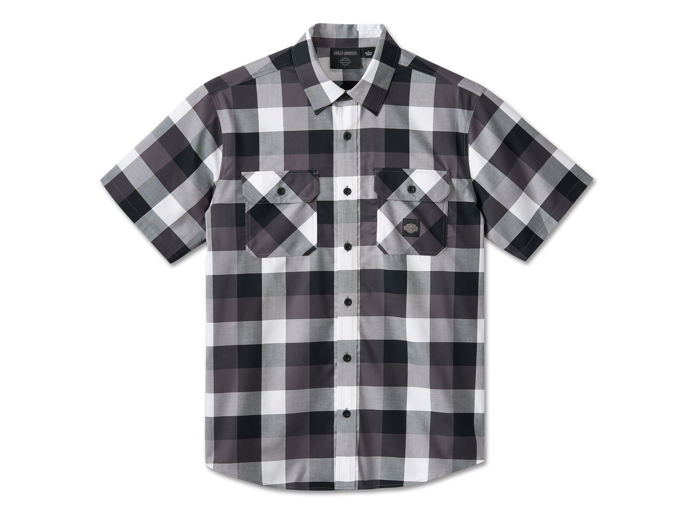 Das Bar & Shield Wrinkle Resistant Short Sleeve Shirt ist Dein neues Lieblingsteil für Rallys, Road Trips, Dates und Arbeitstage. Gefertigt aus Popeline aus Baumwoll mit einem Schuss Elastan für zusätzliche Elastizität und dank knitterfreier Harzbeschichtung das ideale Kleidungsstück für unterwegs. Dieses kurzärmelige Button-Down-Hemd für Herren hat eine lockere Passform und einen Hemdzipfelsaum, der sowohl in als auch über der Hose gut aussieht. Das Karomuster bildet den perfekten Hintergrund für den Bar & Shield Jersey-Aufnäher auf der Rückseite.