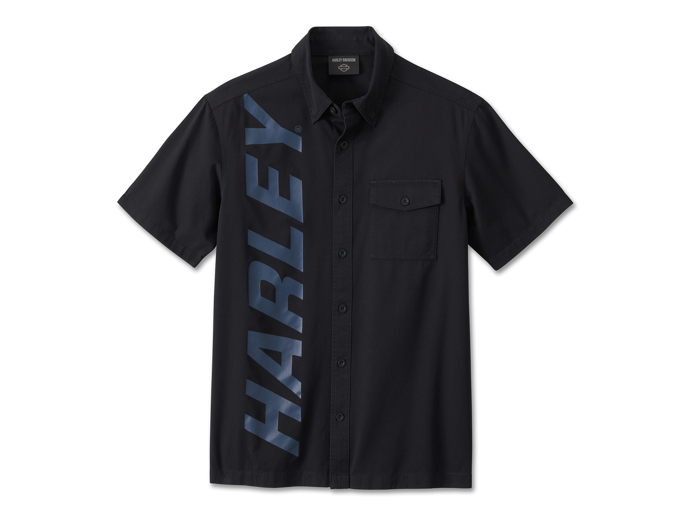 Bei unserem Highside Mechanic Shirt trifft cooler Harley-Stil auf leichten Tragekomfort. Es ist aus Twill aus Baumwolle gefertigt, der weich gewaschen wurde, damit er sich wie eingetragen anfühlt. Der kürzere und weitere Schnitt sorgt für eine entspannte Passform mit Belüftungsöffnungen an den Seitennähten und einem Kragen mit versteckten Druckknöpfen, der beim Fahren unter Deiner Motorradbekleidung an seinem Platz bleibt. Der Rücken ist frei gehalten, damit das unverwechselbare vertikale Motiv auf der Vorderseite die ihm gebührende Aufmerksamkeit bekommt.