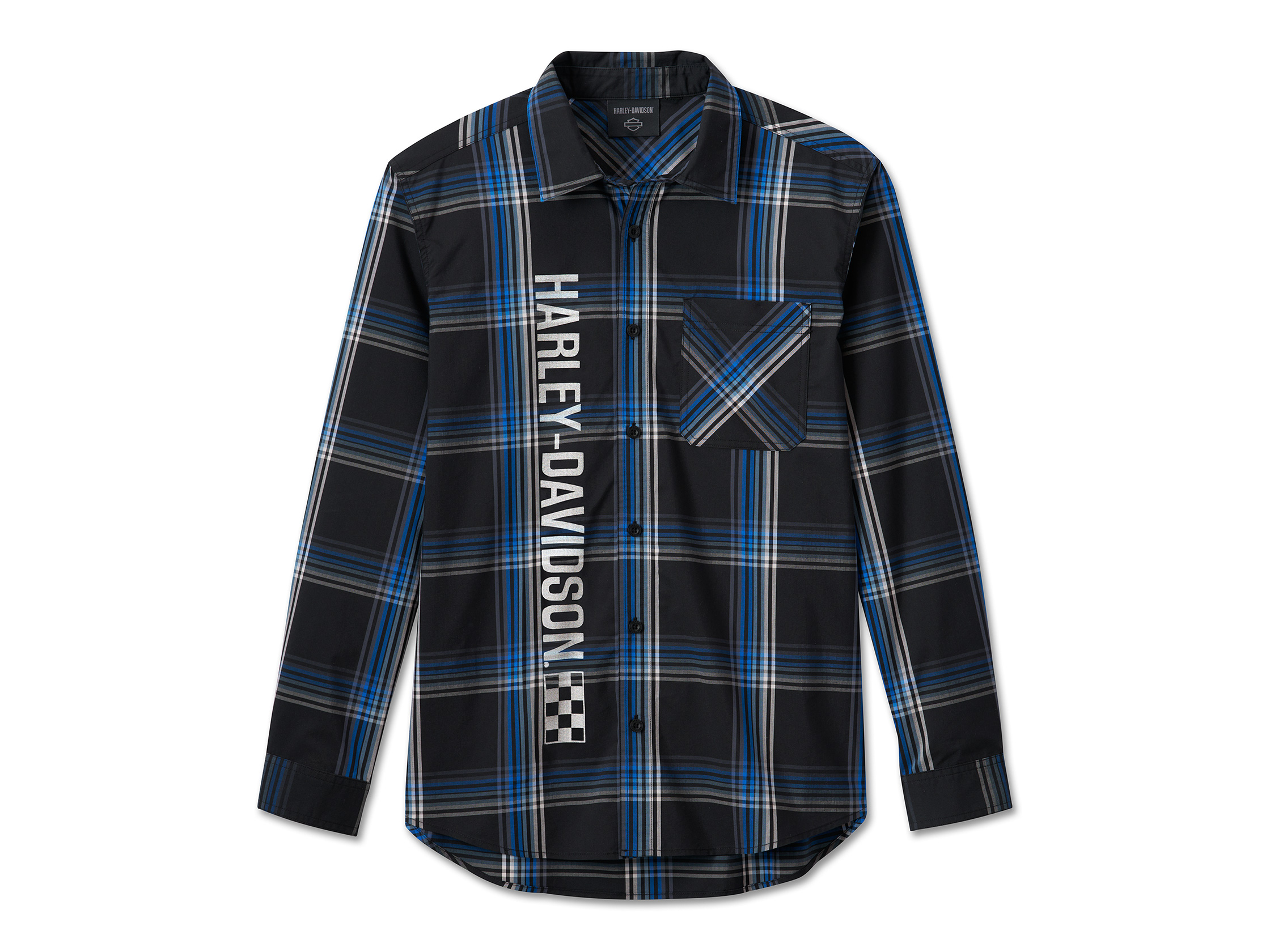 Das The Bagger Long Sleeve Shirt macht aus Karo eine Hommage an unser Rennsport-Erbe. Es ist für leichten Tragekomfort aus Popeline aus Baumwolle und Polyester gefertigt, mit einem Hauch Elastan für zusätzliche Elastizität. Dieses Button-Down-Hemd für Herren hat eine entspannte Passform und einen Hemdzipfelsaum, der sowohl in als auch über der Hose gut aussieht. Das vom Rennsport inspirierte Motiv auf der Vorderseite sorgt für einen unverwechselbaren Harley-Davidson Look.
