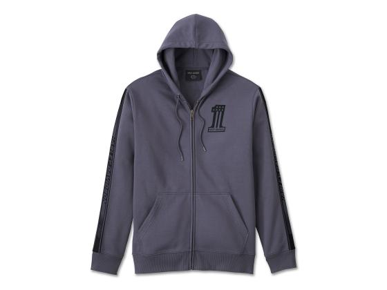 Das #1 Racer Zip-Up Hoodie ist eine Hommage an unser siegreiches Rensport-Erbe. Das Fleece aus Baumwolle und Polyester bietet dauerhaften Tragekomfort in einer entspannten Passform. Mit einem robusten Frontreißverschluss, geräumigen Kängurutaschen und einer selbstgefütterte Kapuze mit Kordel. Dieses Herren-Hoodie erhält seinen edlen Look durch die aufgesetzten Ärmelstreifen und die vom Rennsport inspirierten Motive. Tatsächlich wurde dieses #1 Logo hier anlässlich unseres AMA Grand National Championship Titels im Jahr 1969 entworfen.