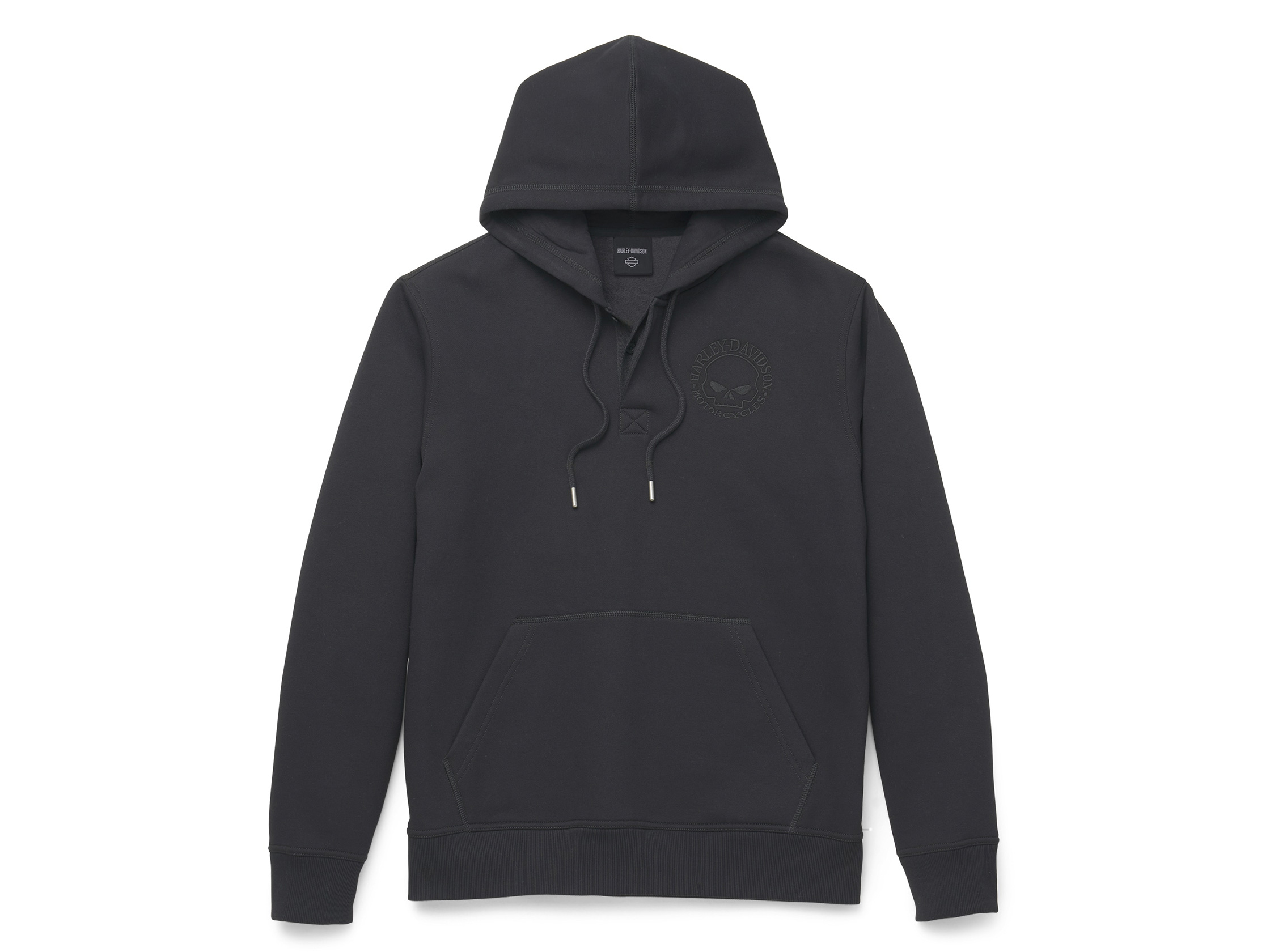 Viele haben versucht, die spezielle Handwerkskunst von Harley-Davidson zu kopieren, aber legendären Stil - wie dieses ikonische Motiv - kann man nicht fälschen. Dieses Teil wird es nicht lange geben, also leg es in Deinen Warenkorb, wenn Du es willst. Der originale Willie G Skull ist ein subtiles, aber wirkungsvolles Statement auf der Vorderseite dieses limitierten Fleece-Hoodies aus Baumwolle und Polyester. Das tonale Stickmotiv verleiht diesem zeitlosen Hoodie einen unauffälligen Look. Erhältlich in traditionellem und Slim-Fit-Schnitt, mit einer Kapuze mit Kordel und einer Fronttasche.