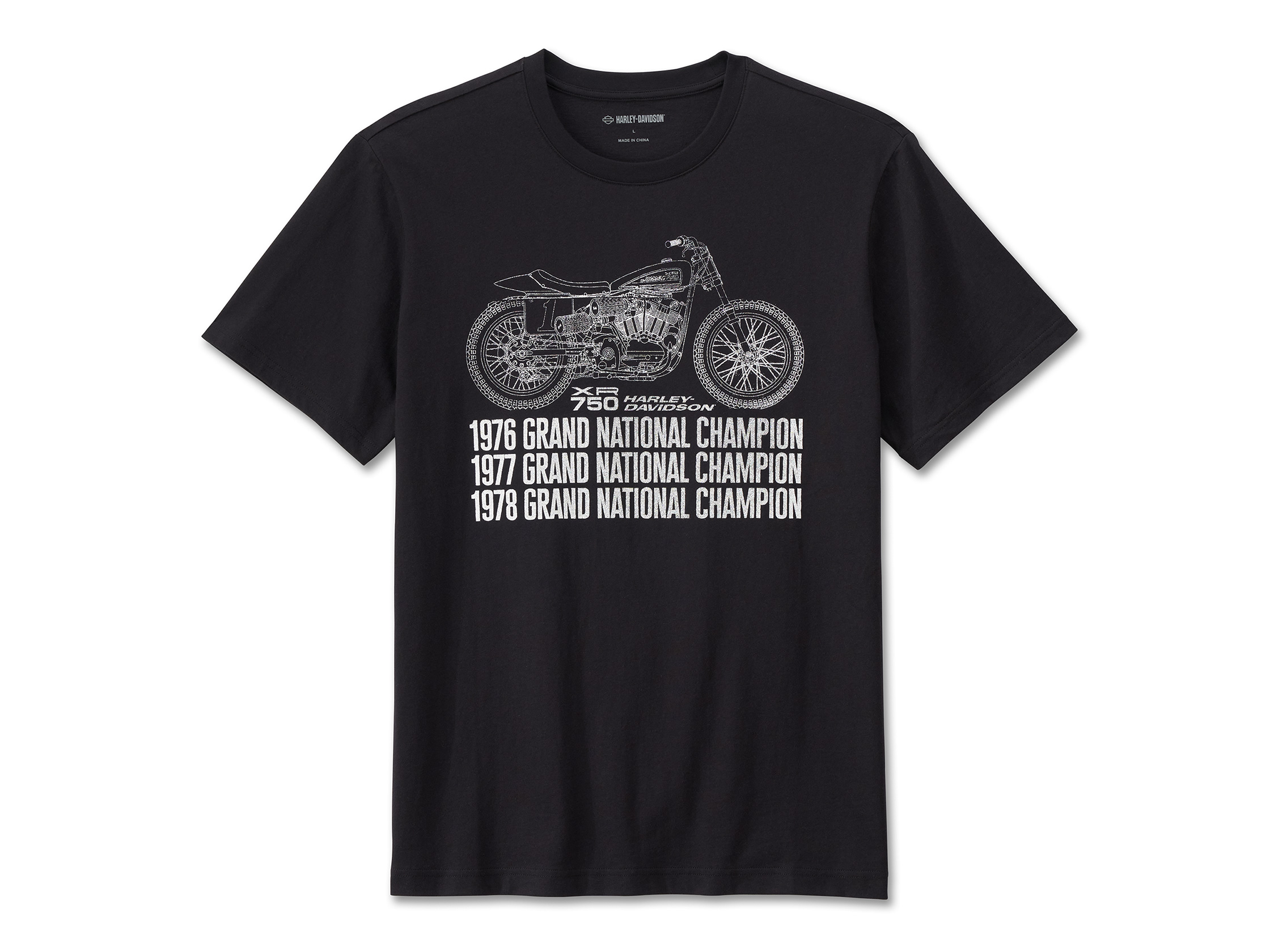 Feiere unsere drei aufeinanderfolgenden AMA Grand National Championship Titel in den 1970er Jahren mit dem The Ton T-Shirt. Dieses Limited Edition Herren-T-Shirt in entspannter Passform ist aus Jersey aus Baumwolle gefertigt. Zusätzlich zu den Siegerjahren zeigt die das Motiv auf der Vorderseite unseren legendären Dirt Track Racer XR-750. Der Vorrat an diesem nostalgischen Lieblings-T-Shirt ist begrenzt - bestelle deshalb jetzt.