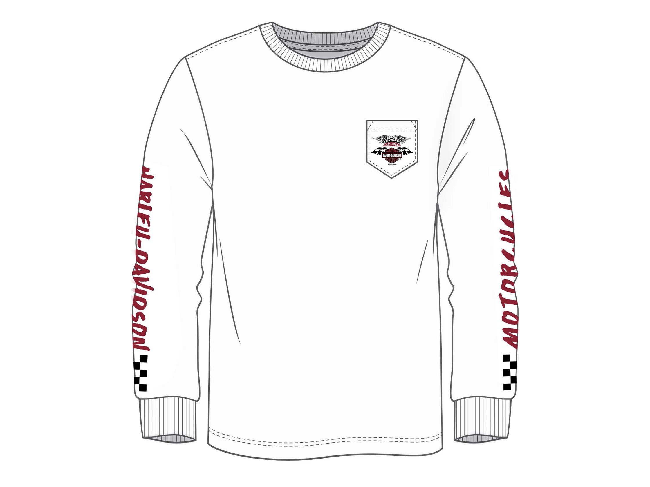 Harley-Davidson Longsleeve mit House of Flames Rosenheim Dealer-Aufdruck auf der Rückseite.