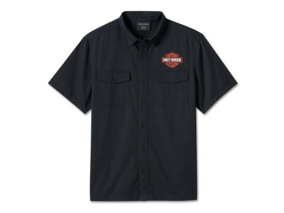 Dieses Bar & Shield-Shirt ist der Inbegriff von mühelosem Stil und erstklassigem Komfort. Hergestellt aus 100 % Baumwolltwill, der nie steif oder einengend ist, da er vorgewaschen ist, um bei Kilometer 1 für ein angenehmes Tragegefühl zu sorgen. Gebrandet mit unserem berühmtesten Logo in einer gestickten Applikation für einen dezenten, authentischen H-D®-Look.