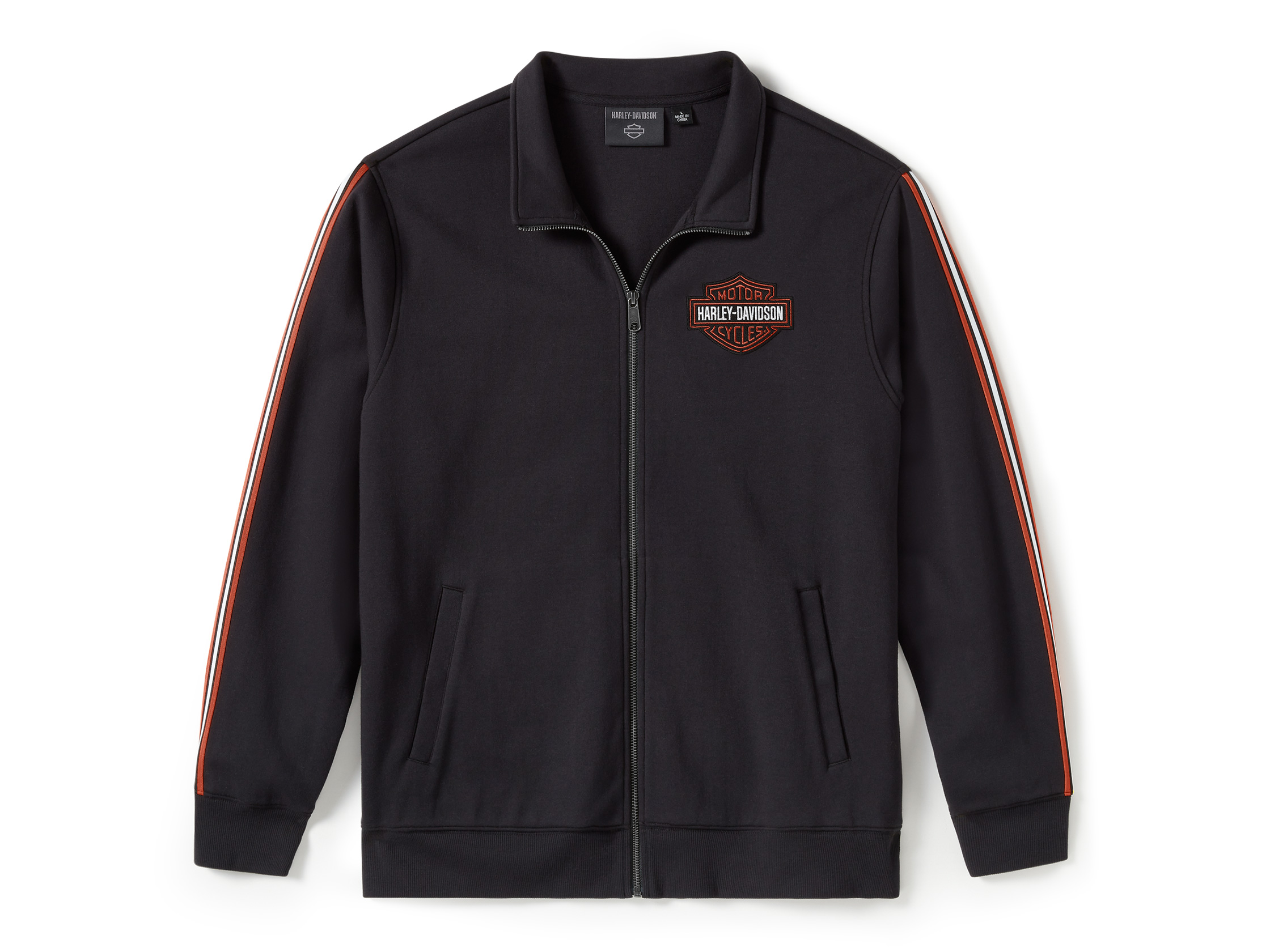 Die Essential Fleece Zip Front Trainingsjacke feiert sportlichen Stil in unserer zentralen Farbpalette. Diese Herren-Freizeitjacke ist aus einer schweren Interlock-Mischung gefertigt, die fest und saugfähig, aber dennoch superweich ist. Mit Ärmelstreifen und einem gestickten Branding, das für einen klassischen H-D Look sorgt.