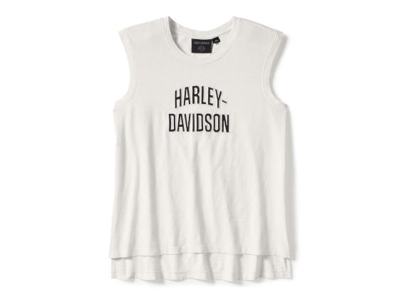 Das Essential Arched Font Cap Sleeve Tanktop verbindet zeitlosen H-D Stil mit langanhaltendem Tragekomfort. Es ist aus atmungsaktivem Jersey aus negativ genoppter Baumwolle gefertigt, der für einen strukturierten, eingetragenen Look mit Pigmenten gewaschen wurde. Dieses Damen-Top verfügt über eine Kellerfalte auf dem Rücken und einen High-Low-Saum mit geschlitzten Seitennähten für eine schmeichelhafte Passform, die sich Deinen Bewegungen anpasst. Auf der Vorderseite befindet sich ein bogenförmiges Branding, das an unsere Rennbekleidung aus den 1930er Jahren erinnert.