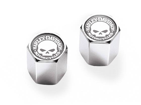 VERCHROMTE ABS-VENTILSCHAFTKAPPEN - Weißes Skull Logo auf schwarzem Grund