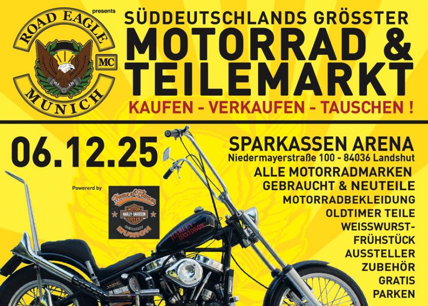 Am Samstag den 6.12.25 ist es wieder soweit, der Süddeutsche Motorrad und Teilemarkt öffnet seine Pforten für alle Motorradfans. Ob Neu- oder Gebrauchtteile aller Marken, ganze Motorräder, Motorradbekleidung oder Accessoires.