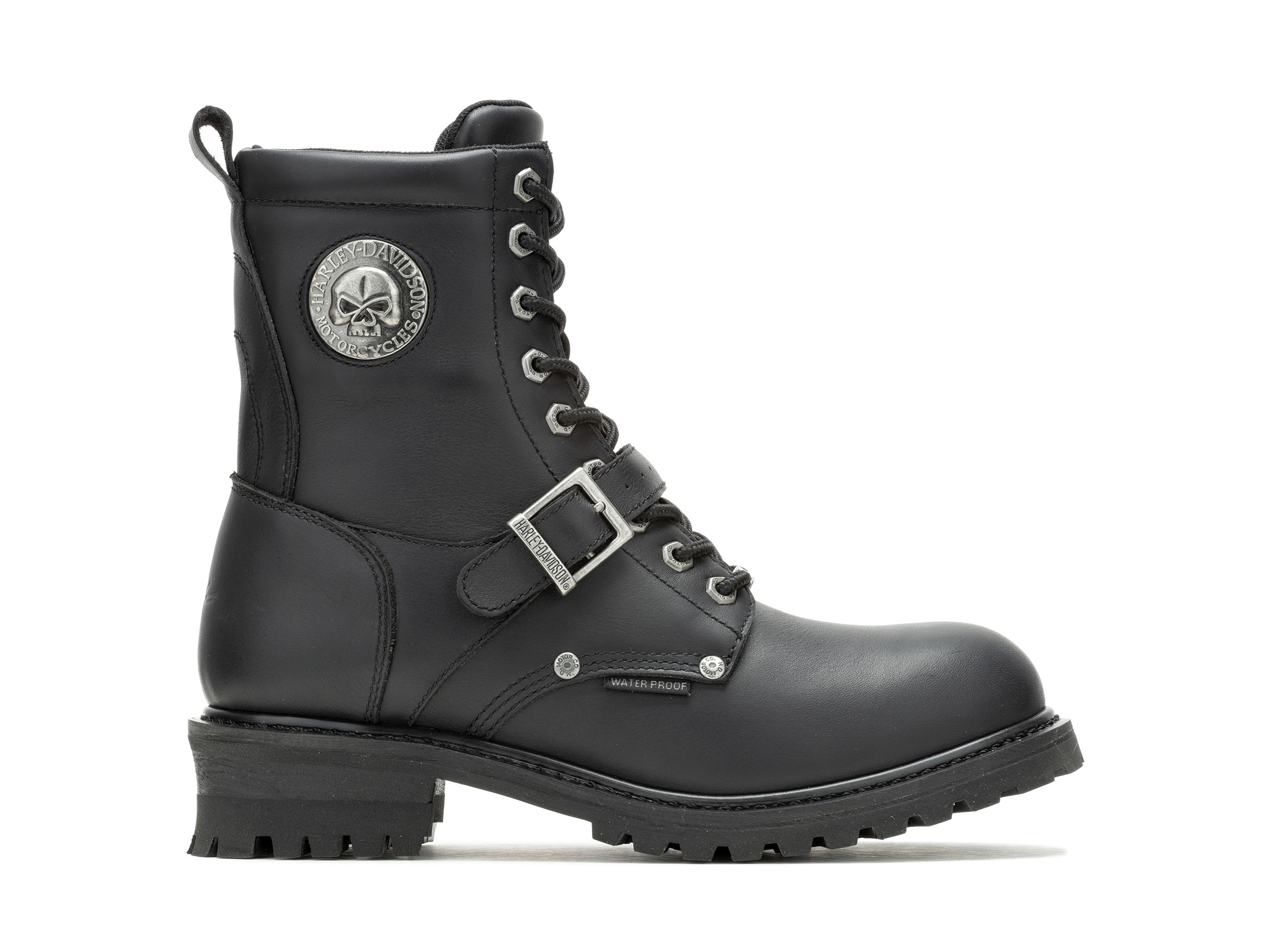 The classic Faded Glory boot has been elevated with premium Willie G. hardware. Enhanced with waterproof full grain leather and Poron® ankle protection for added confidence on the road. The 'logger' outsole and leather strap with buckle detail make this an iconic HD® style.