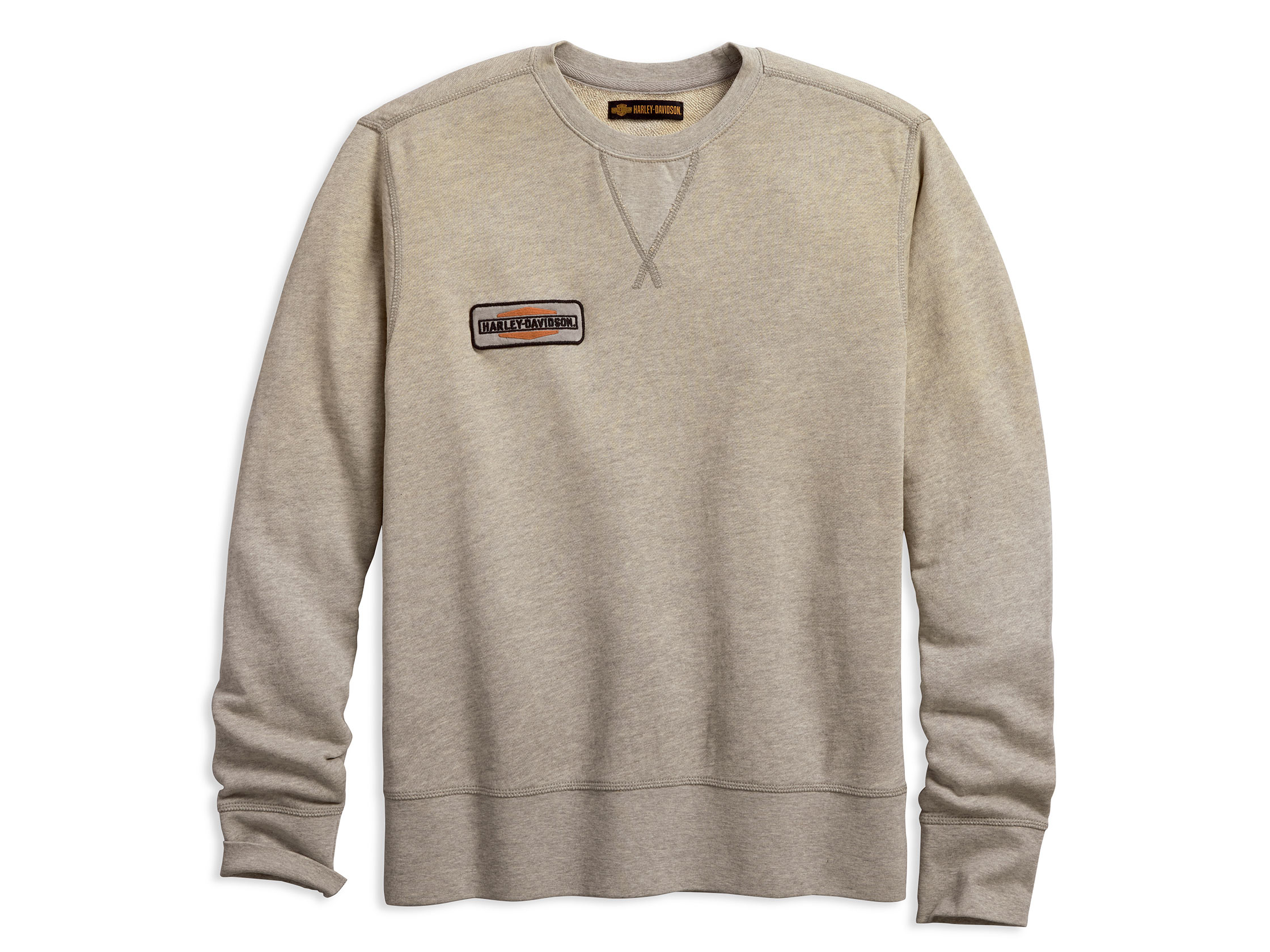96% cotton, 4% polyester French terry with pigment spray is washed for softness. Rib-knit neck trim, cuffs, and waist. Embroidered patch on right chest and back.