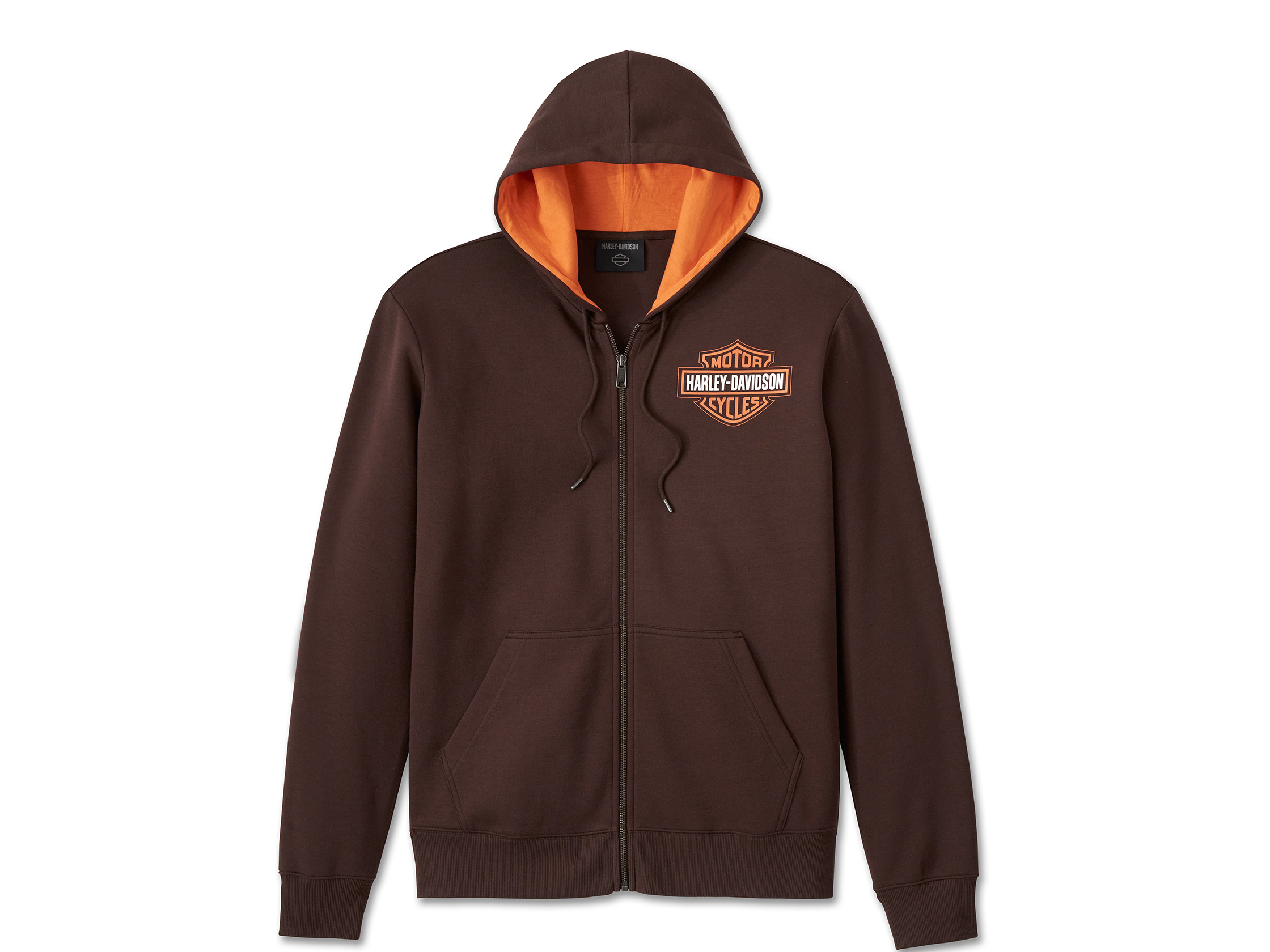 Throw on a layer of throwback style in the Limited-Issue Spirit of Freedom Zip-Up Hoodie. This men's hoodie in a relaxed fit is crafted from heavyweight cotton/polyester interlock for breathability and built-in stretch. Features a contrast hood lining for an elevated look, and is finished with our soaring eagle graphics plus a design inspired by our 1980s Fat Boy tank art. Snag yours before they're all gone.