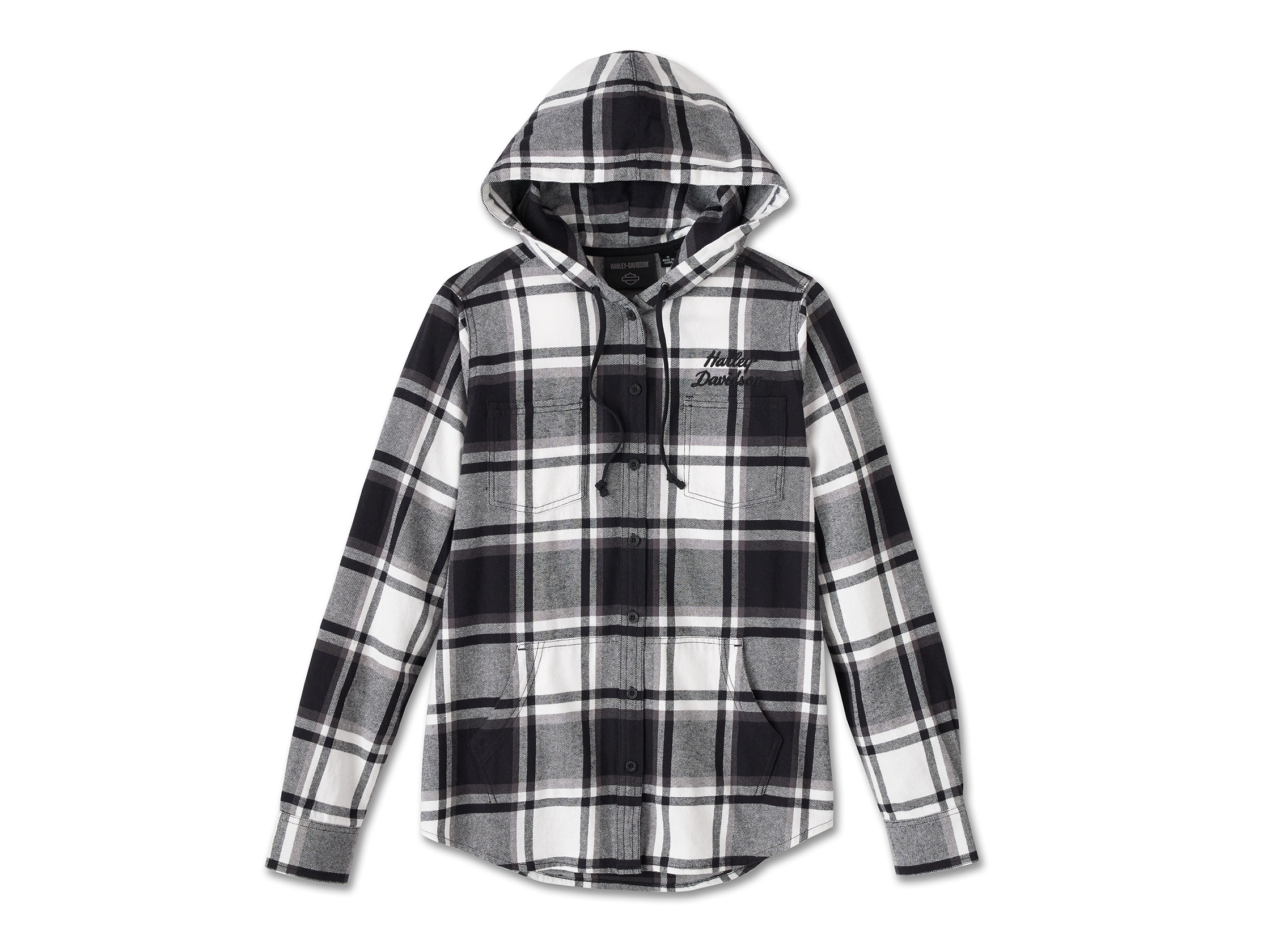 Refresh your flannel collection with this latest seasonal offering. Our Street Surplus Long Sleeve Flannel Shirt is an ideal layering piece with its drawstring hood, button front, and ample pockets. Crafted from midweight cotton twill yarn-dyed plaid that's brushed for a cozy feel. Its relaxed fit and high-low shirttail hem looks great with your favorite jeans or leggings. Our embroidered branding hits the front and fills the back for a timeless look. Top this women's flannel off with seasonal racing style—wear it with our Trophy Retro Trucker Cap (97726-24VW).