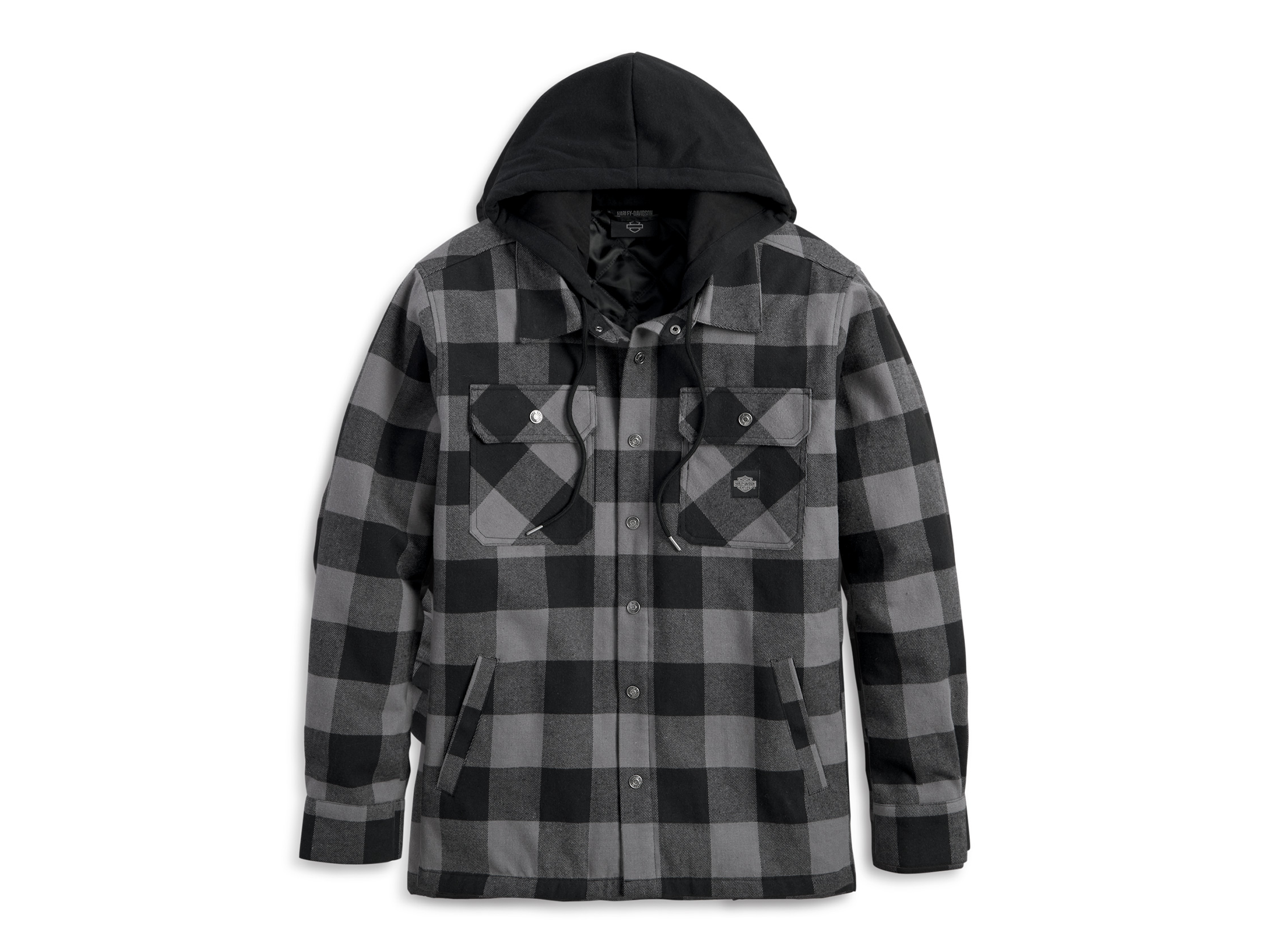 • Materials: 100% cotton twill yarn-dyed plaid. 60% cotton, 40% polyester fleece hood. 100% polyester taffeta lining.