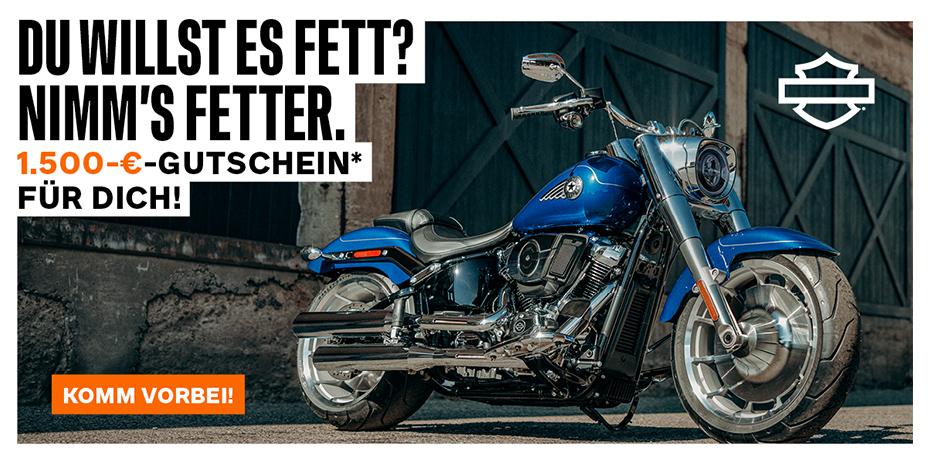 * Das Angebot gilt in Deutschland und Österreich und nur bis 31.10.2025. Beim Kauf eines aktuellen Harley-Davidson® Cruisers aus der aktuellen 2025er Harley-Davidson® Cruiser Modellpalette erhältst Du in Deutschland und Österreich einen Gutschein im Wert von 1.500 € für Harley-Davidson® Motorradbekleidung, Parts & Accessories. Der Gutschein ist nicht übertragbar, nicht erstattungsfähig und kann nicht in Bargeld ausgezahlt werden. Er ist nur bei teilnehmenden Harley-Davidson® Vertragshändlern einlösbar. Ein nicht genutztes Guthaben verfällt. Das Angebot kann nicht mit anderen Aktionen kombiniert werden und kann jederzeit zurückgezogen werden. Es gelten die örtlichen Geschäftsbedingungen.