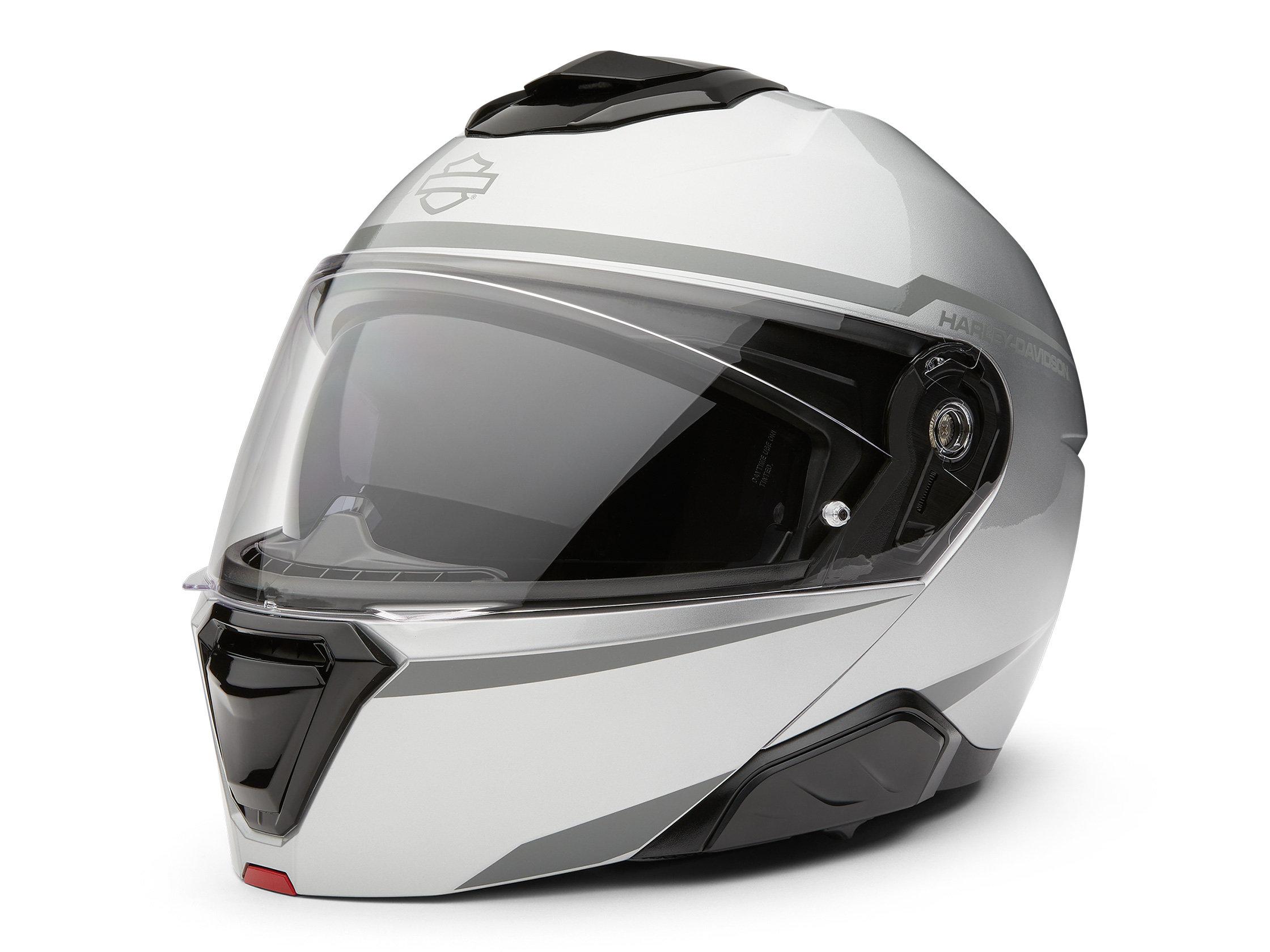 Level up in comfort and visibility on every ride with our latest H-D Capstone Sun Shield III H35 Modular Helmet. Its ventilation advancements deliver full front-to-back airflow to flush heat and humidity out on every ride. This motorcycle helmet also has a dynamic multi-step sun visor that provides added convenience and visibility in varying light conditions. Its advanced polycarbonate composite shell provides a lightweight, superior fit that meets applicable safety standards. Cleanly branded for a contemporary look, and available in a lowkey Matte Harley® Black or head-turning Matte Metallic Silver finish. See all its specs below, then snag yours now.