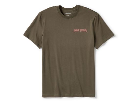 Ride-or-die moto style takes a nostalgic detour on our See No EVO Graphic Tee. Crafted for longwearing comfort from breathable cotton jersey, this men's t-shirt has a rib-knit neckline to help keep its shape. The hit of graphics on front mimics our 1980s tank art. The custom artwork on back combines 1980s tank art with designs inspired by the legacy of our Evolution® or "Evo” Engine (1984 to 1999).