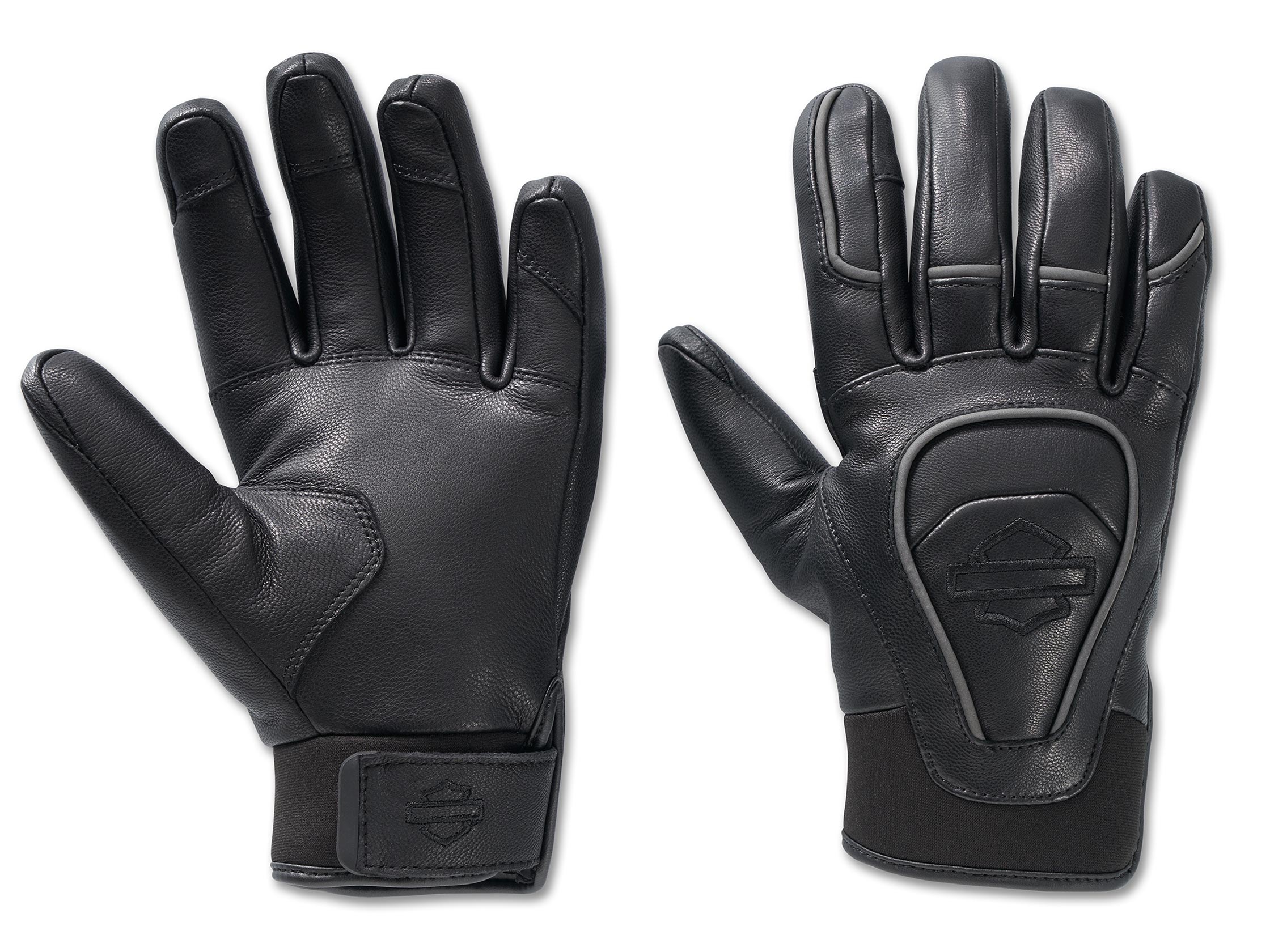 Subtly styled, sensibly engineered is the best way to describe the Ovation Waterproof Leather Gloves. Made from goatskin and neoprene, these full finger gloves are well-equipped to handle rainy riding conditions with a waterproof insert, plus they feature pre-curved fingers, an easily adjustable Velcro" wrist, and reflective piping for added visibility. Minimally branded for a versatile look that complements any Harley-Davidson riding jacket or helmet.