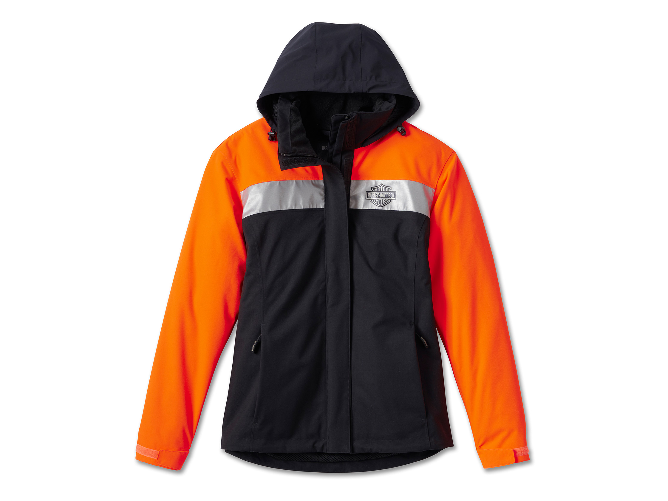 High visibility, high performance, high versatility…Three reasons why our Full Speed II Waterproof Rain Jacket sets a new standard in rain gear. Made from a lightweight cut of nylon and fully lined for a better, more breathable feel with highly-visible contrast piecing plus reflective trim. Water stands no chance, thanks to its seam-sealed construction with a unique rain gutter and storm flap placket. Its versatile design fits over riding gear with a helmet-friendly hood that packs into the collar. There's ample pocket space to keep your essentials dry, plus the entire jacket packs into the interior zipper pocket for easy storage. To ride on through the wettest conditions, pair this jacket with our Full Speed II Waterproof Rain Pants—sold separately for your convenience and sizing needs.