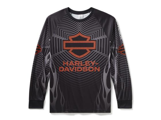 Bold, rider-inspired style that honors our legacy is here on the Bar & Shield Moto Jersey. Crafted from polyester for lightweight, longwearing comfort that's also wrinkle-free, it's an ideal layering and pack-along piece for rides and rallies. This enthusiast favorite in a classic fit also has a rib-knit neckline and cuffs to help keep its shape. From flames ripping up the sides to our 1903 inception date, its impressive mix of eye-catching graphics create a truly authentic Harley-Davidson look