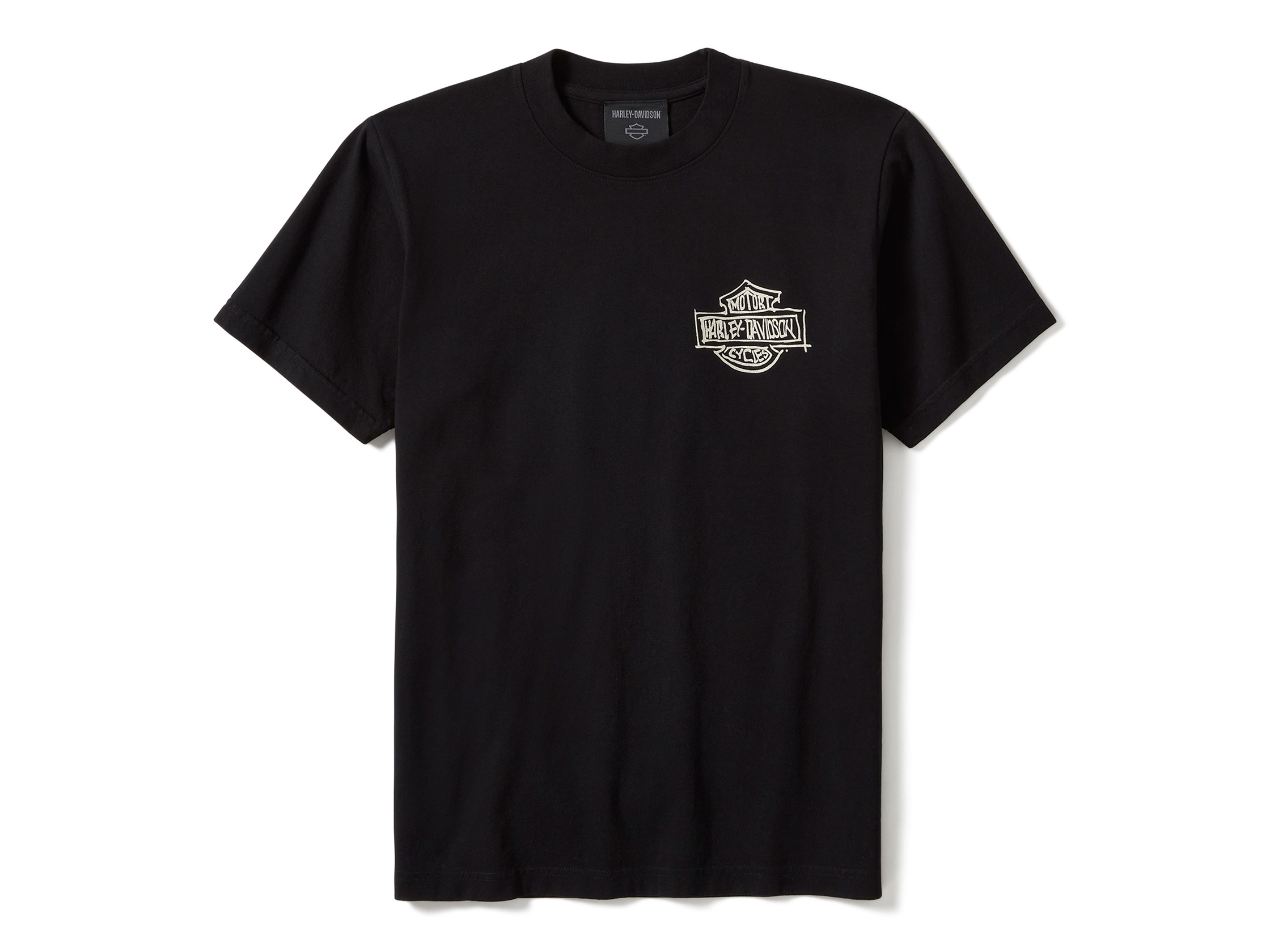Legendary style meets the rush of the open road on our In The Wind Rider Sketch Art Short Sleeve Tee. Its durable cotton jersey build delivers a relaxed fit that's enzyme washed for a well-worn vibe. Finished with an original Willie G design that captures the essence of Harley-Davidson die-hards. Part of the Willie G Sketch Collection of authentically made in USA garments that feature hand-drawn and signed artwork by our iconic designer, Willie G. Davidson
