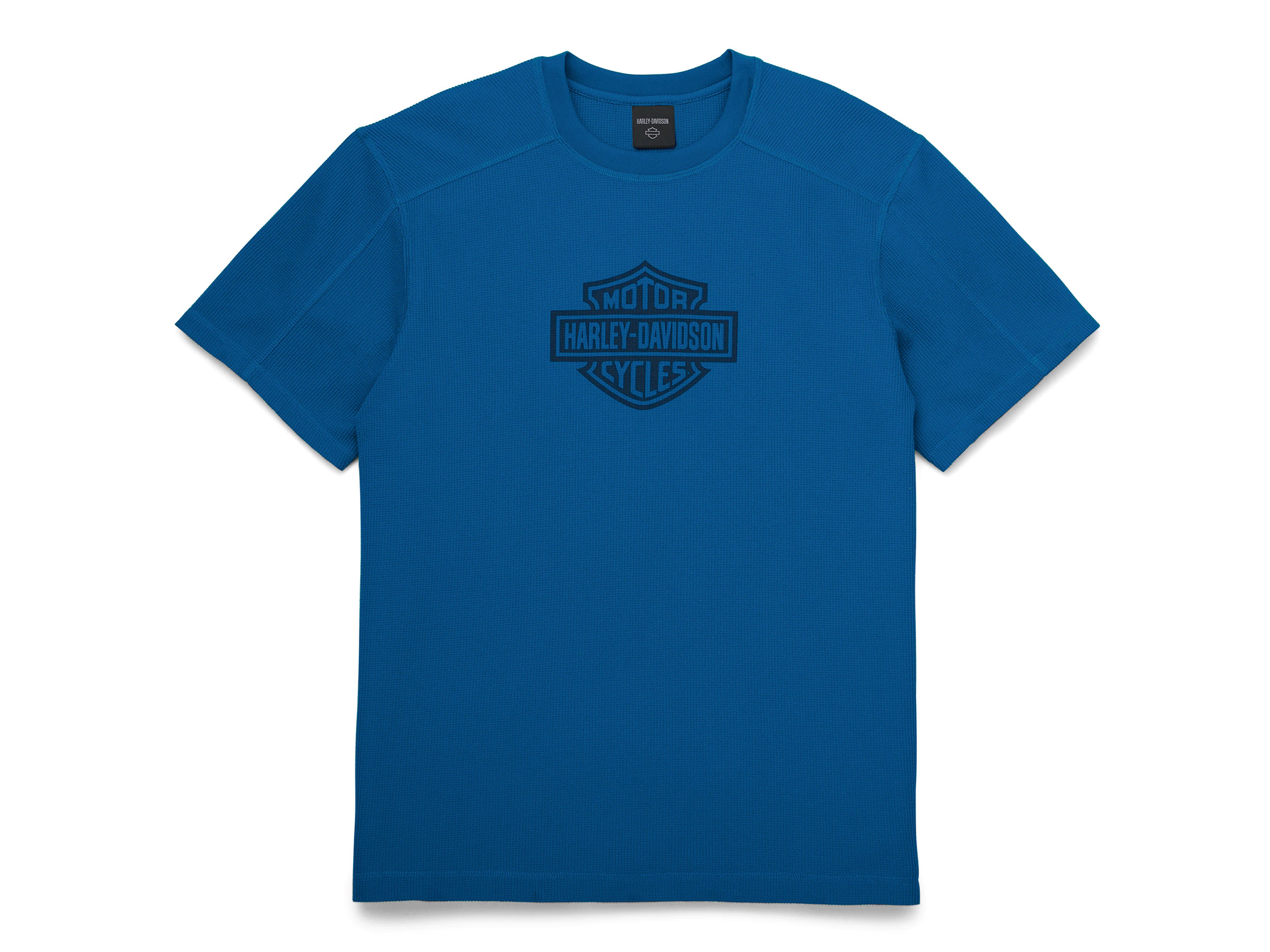 We move the dial on performance gear with this winner. Our men's Bar & Shield Performance Tee is built from fast-drying poly/spandex thermal. Ideal to layer in all weather and any season. A simple print of the timeless Bar & Shield logo marks the front of this versatile tee.