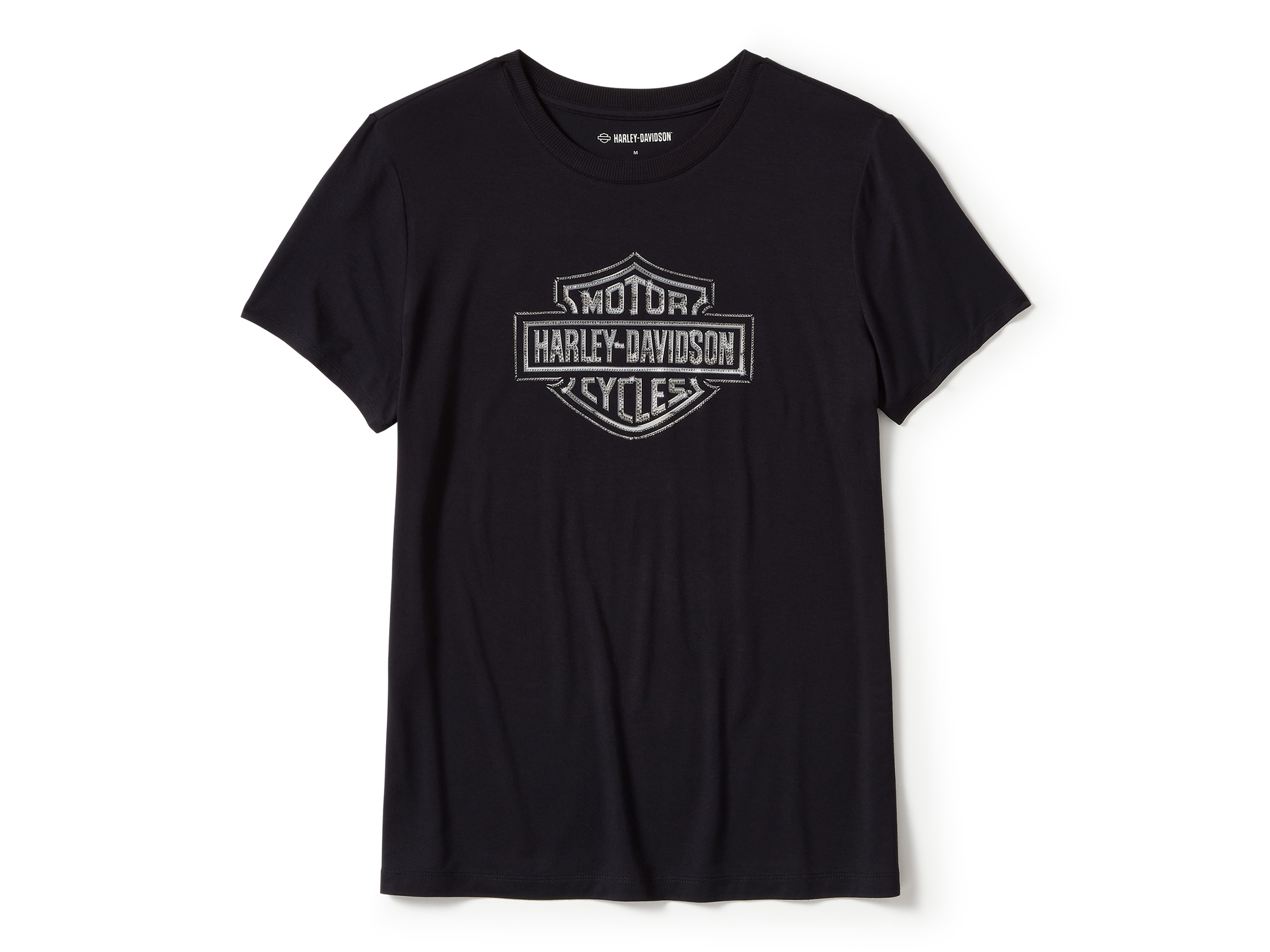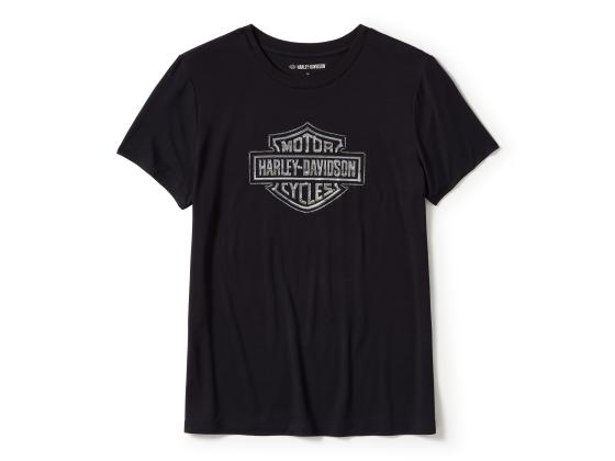 Add some moto-inspired sparkle to your casual look with our Essential Bling Crew Neck Tee. Its rayon/spandex jersey build is breathable, soft, and wrinkle-free (so it travels well in your saddlebag or suitcase). The embellished version of our most beloved graphics on this women's t-shirt transforms it from standard into stunning.