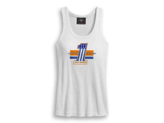 Build any look with the #1 Retro Tank. Our ladies' tanks are an absolute essential riders love because they are 1) super comfortable (soft, cotton/spandex), 2) very flattering (hello, rib and stretch!), and 3) extremely versatile (white with classic graphics). Add it up and this women's sleeveless top is a triple threat. Materials: 93% cotton, 7% spandex. 2x1 rib.