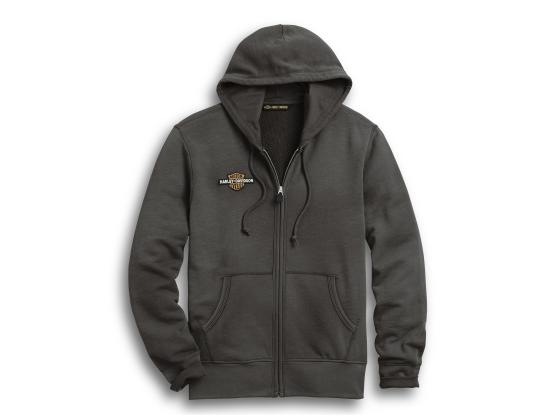 Wrench or rally in the comfortable zip-up Racing Circle Hoodie. The art has a vintage club feel and the distressed printing implies that this one's been around the track a few times. For a vintage fade and soft feel, this men's hoodie is put through the ringer with rugged stonewashing. 100% cotton slub loop terry.