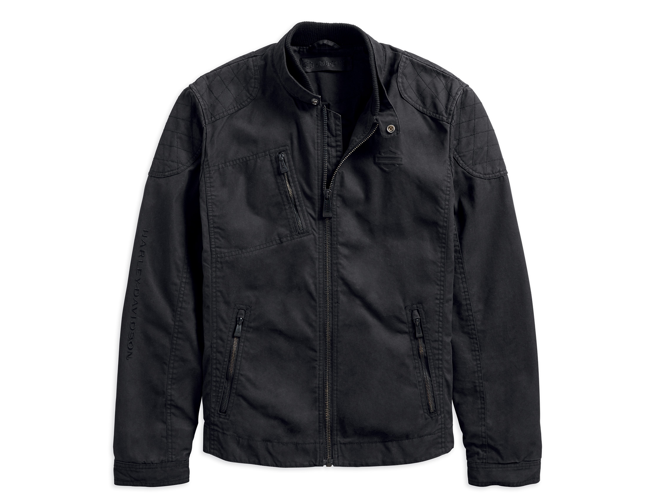 The rugged wax finish and diamond stitching lend unique textures to this versatile piece. Lined with lightweight cotton poplin, the Waxed Canvas Slim Fit Jacket offers just enough cover for cool weather. Subdued graphics complement the sleek lines of this men's casual jacket.