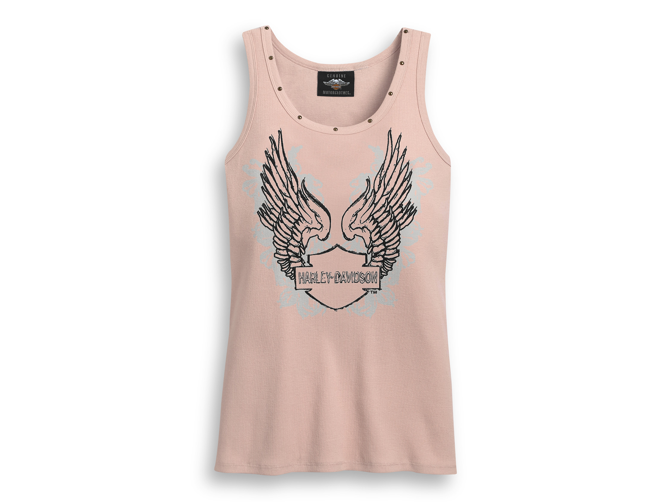 Let your shoulders come out and play in the Winged Logo Tank. This pretty layer is styled from rider-favorite cotton/spandex rib for great fit and total comfort. Pretty studs add a touch of bling to this women's sleeveless top.