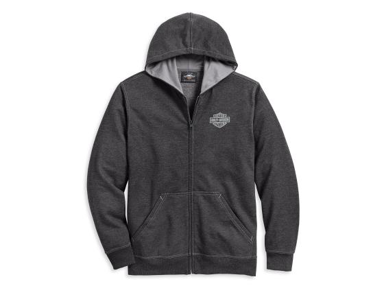 The Winged Logo Zip-Front Hoodie doesn't need fussy details because the cut and graphics are time tested. The classic men's hoodie design is cut from super soft fleece with a lined hood. The enduring winged logo marks the back of this laidback men's hoodie. Materials: 60% cotton, 40% polyester fleece.