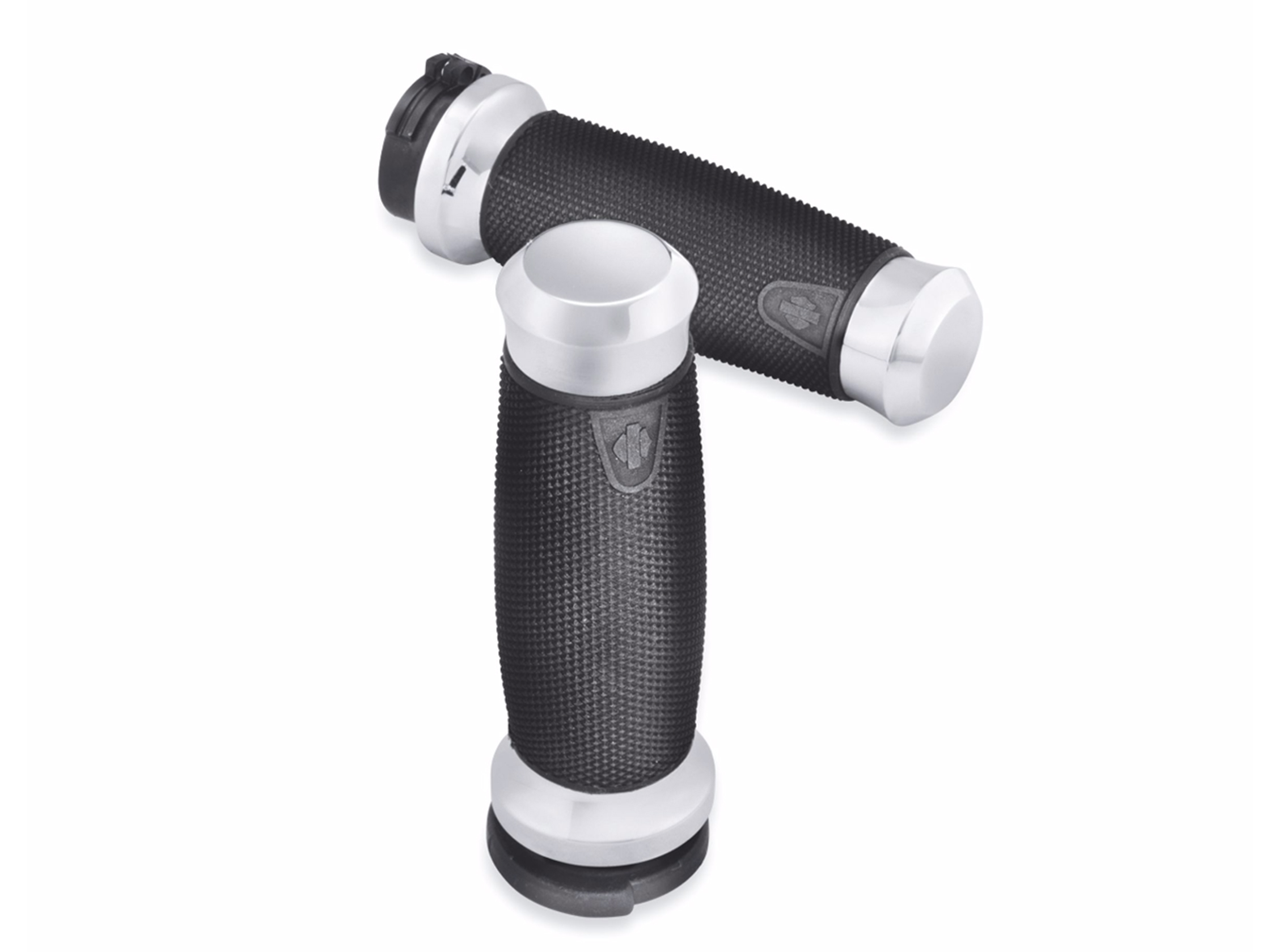 Dressed in tactified rubber for superior traction, these elegant hand grips provide a positive connection to the controls in wet or dry weather. The soft touch cross-hatched rubber surface feels good against both gloved and bare skin and the "thicker in the middle” profile forms a natural fit with your closed fist. Shaped for maximum comfort, Get-A-Grip hand grips are available in your choice of standard or magnum diameters to comfortably accommodate almost any size hand. And you don't need to sacrifice style for comfort. Designed to accent any customizing direction, the mirror chrome or gloss black finishes complement both traditional and contemporary looks. The easy-to-install glueless design allows you to remove the grips for service without damage.