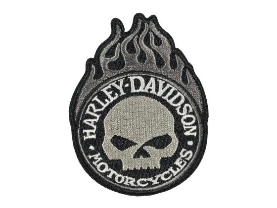 The Willie Flame Patch combines iconic design with bold impact. Measuring 2.12 × 3 inches (ca. 5,38 × 7,62 cm), it features the classic Harley-Davidson skull framed in flames - powerfully embroidered in black, gray, and white. Ideal for jackets, vests, or backpacks, this patch makes a strong statement for anyone who wants to express their rebellious style. A must-have for true Harley fans.