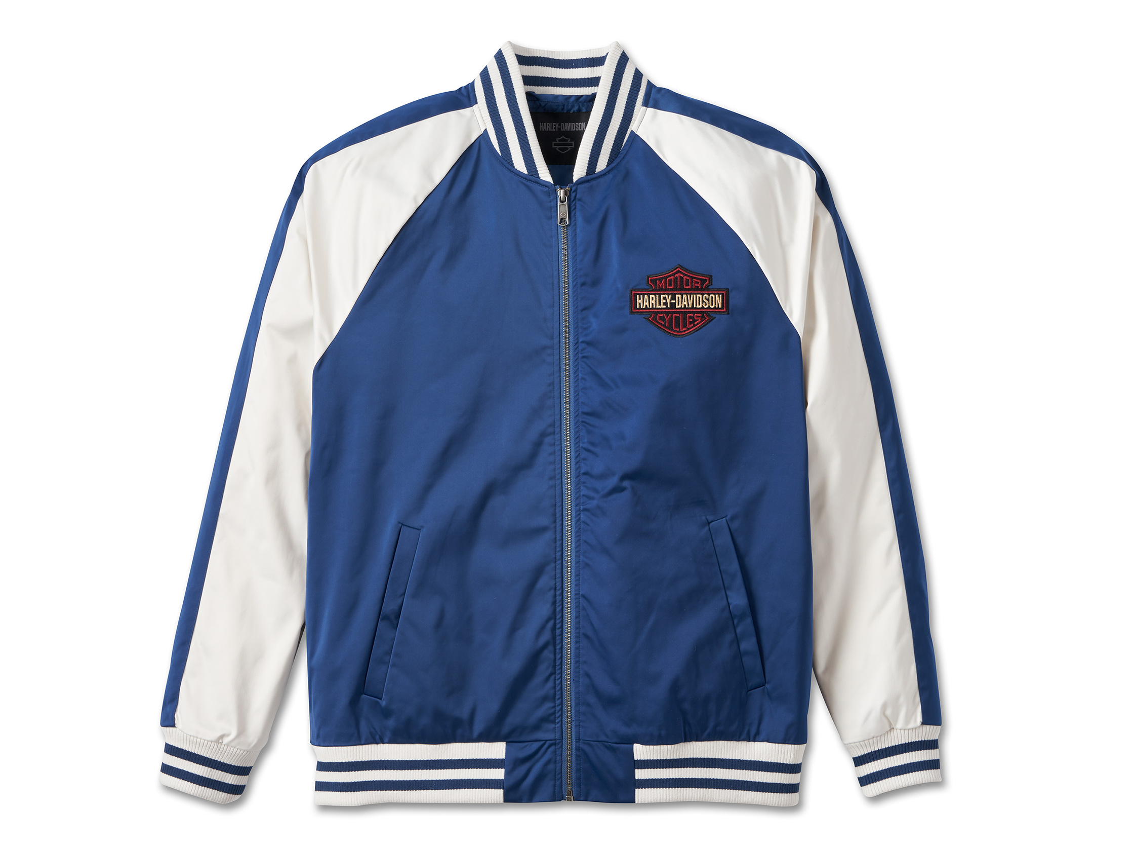 Retro meets Harley pride in our Limited Edition Club Crew Jacket. Made from a smooth cut of polyester satin with a light poly fill and lining for added comfort and warmth. It features roomy hand-warmer pockets plus an interior pocket for stashing essentials. What elevates this jacket to statement-piece status are its contrasting raglan sleeves, bold striping, and impressive embroidered branding. Don't ponder too long—quantities of this jacket are limited.