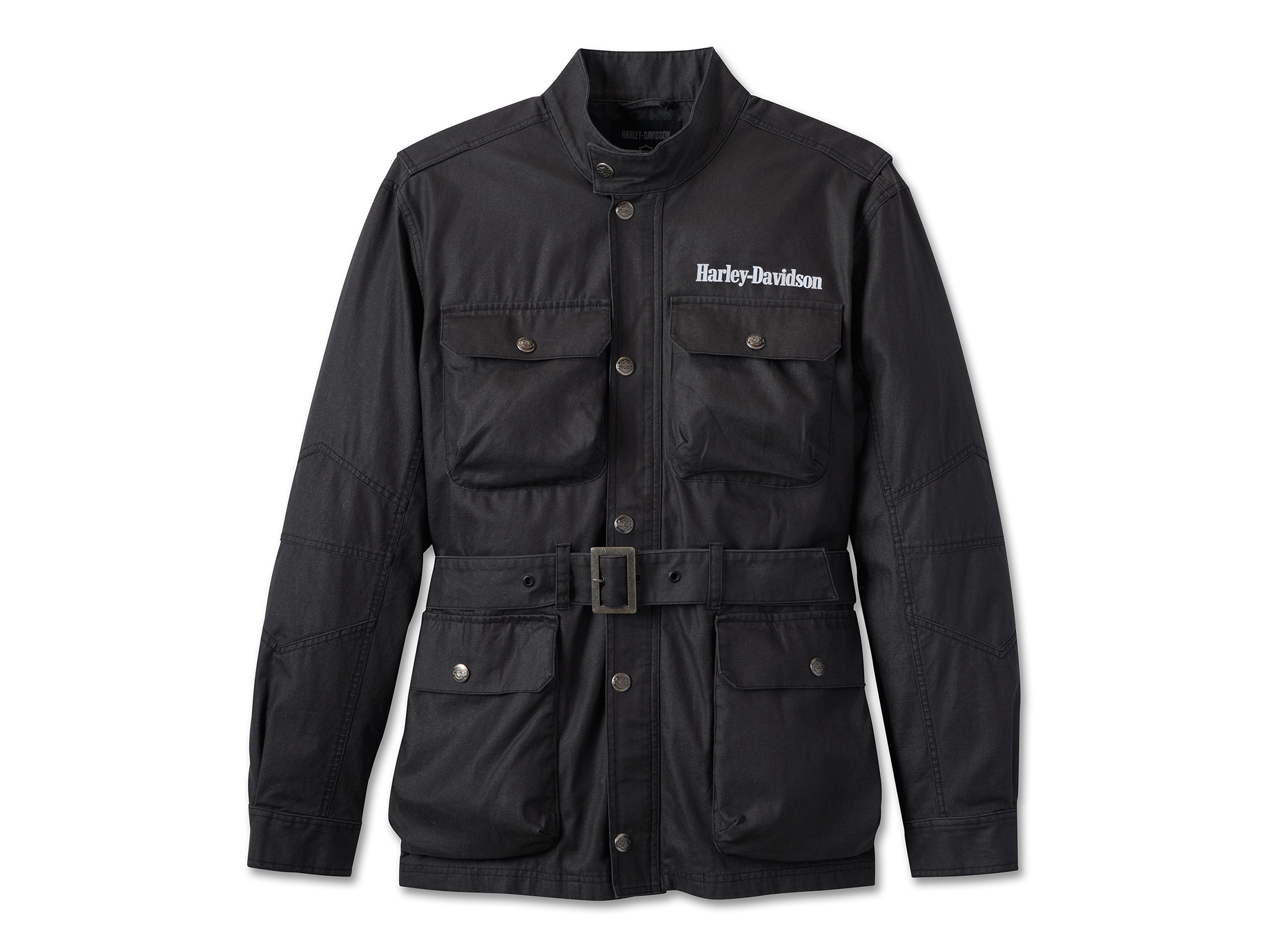 Keep your look legendary in our Limited Issue #1 Riding Jacket. Made from heavyweight cotton plain weave so it's strong, long-lasting and resists pilling. Features an action back, an adjustable belted waistband, and ample pocket space including generously sized bellow pockets. Finished with our seasonal, race-inspired graphics in a reflective print for added visibility. Know the history—the #1 Logo showcased on back originally debuted in 1969 to commemorate Harley-Davidson's AMA Grand National Championship season title. If you like this jacket, cart it now since it's only here while supplies lasts.