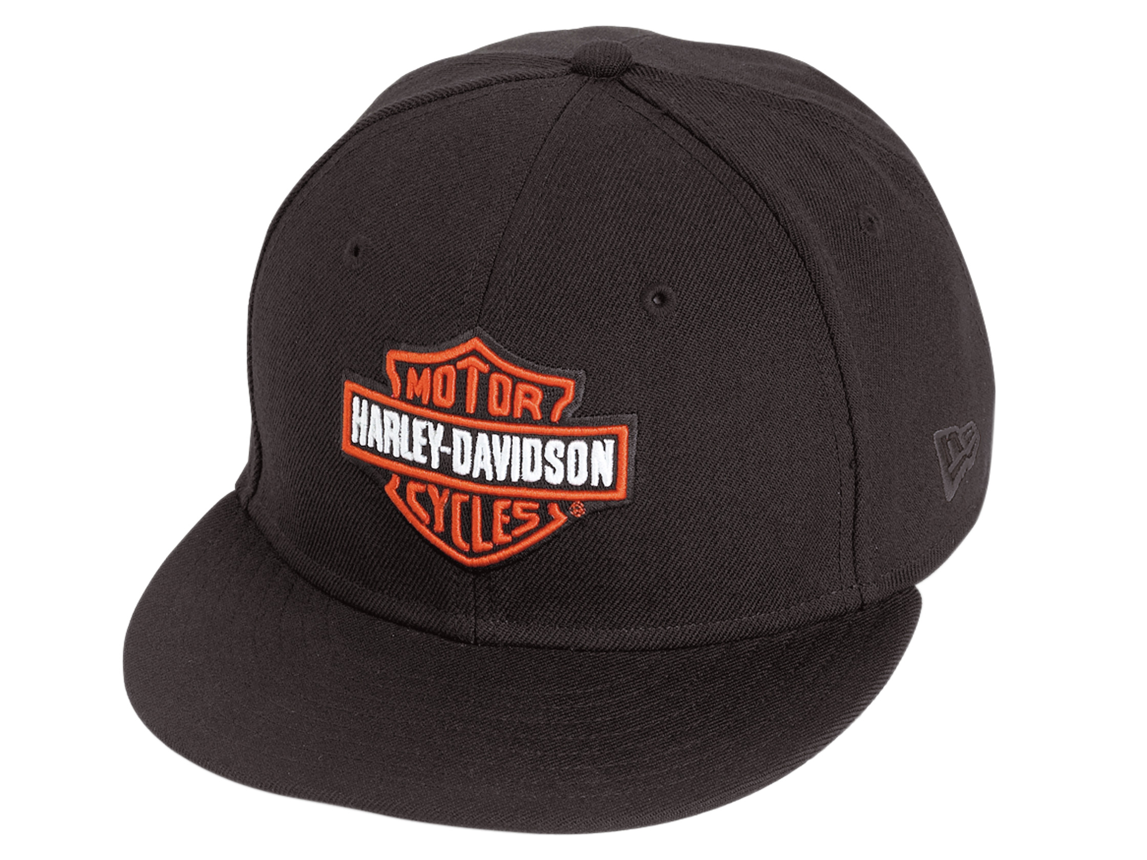 100% wool. Official 59FIFTY®® silhouette by New Era. Embroidered Harley-Davidson® graphics on front and back. Embroidered New Era flag logo on side. Includes the official 59FIFTY® visor sticker for authenticity. Fitted styling.