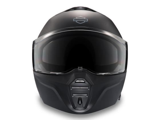 Ventilation, protection, versatility, and much more are all built into the Limited-Edition H-D Evo X17 Sun Shield Modular Helmet. Its pregnated fiberglass construction is loaded with features like adjustable vents (at chin, top, and back spoiler), UVA/UVB protection on the sun shield and face shield, and a fully removable chin bar that instantly transforms from a modular to ¾ open-face configuration. Also has a tool-free ratchet system that properly seals your shield with an elliptical motion, and a moisture-wicking liner that's easy to remove and wash. Minimally branded in a matte finish to pair well with the rest of your riding gear. Get familiar with the rest of its specs below, then order now while supplies last.
