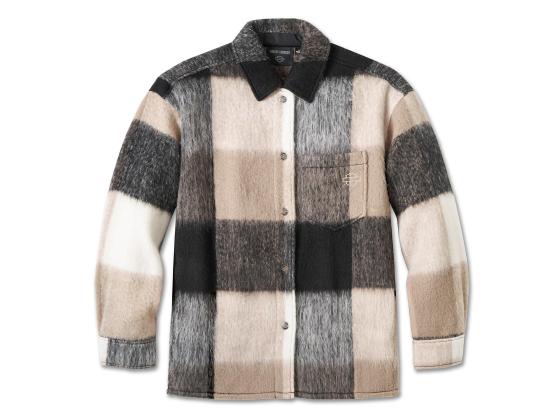 Upgrade your outerwear look this season with our Limited-Issue H-D® Plaid Shirt Jacket. Crafted from heavyweight polyester jacquard that's brushed for a cozy look and feel. Its oversized, boxy fit features chest and hand-warmer pockets, plus a hidden snap-down collar that stays put under riding gear. Its beautifully bold plaid pattern is minimally branded with a hit of embroidery on front. Snag yours while supplies last.