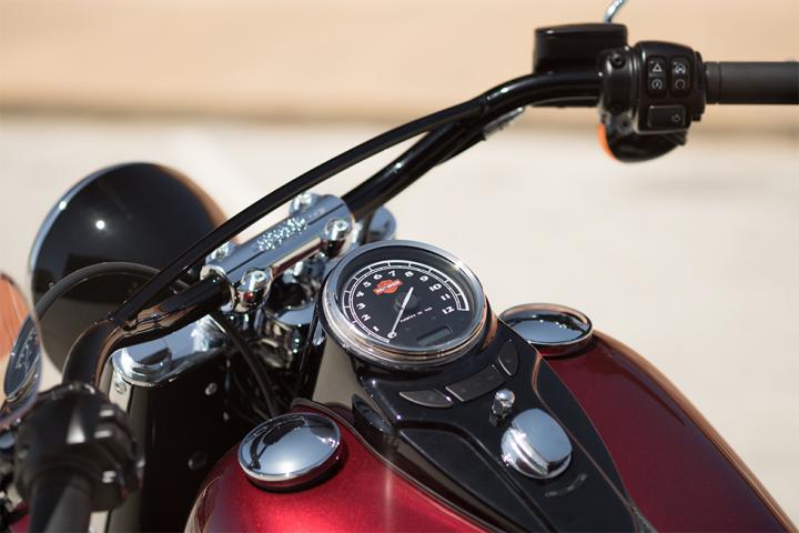Die Schönheit der Technologie einer Softail ist, dass sie nie technologisch aussieht. Das ist kein Zufall und war auch nicht einfach zu bewerkstelligen. Insbesondere wenn Sie bedenken, dass die Inspiration für die gesamte Familie die klare Vintage-Hardtail mit ihren weiten, offenen Linien war. Sie mit viel zu viel Hightech-Klimbim vollzupacken, hätte ein völlig anderes Motorrad ergeben. Sehen Sie sich die ABS-Bremsen an, die nun an vielen Softail Modellen zum Standard gehören und in der gesamten Linie erhältlich sind. ABS verleiht Ihnen die Kontrolle, die Sie über ein modernes Motorrad haben wollen. Unsere Teams von Industriedesignern und Ingenieuren waren erst fertig damit, als das gesamte System ein gestrafftes Design hatte. Dasselbe gilt für den klaren Look der Lenker, dank dem neuen elektronischen Gasgriff-System, das jedes Softail Modell hat. Mit jedem neuen Jahr, in dem wir etwas mehr Technologie hinzufügen, sieht das Bike besser und besser aus.