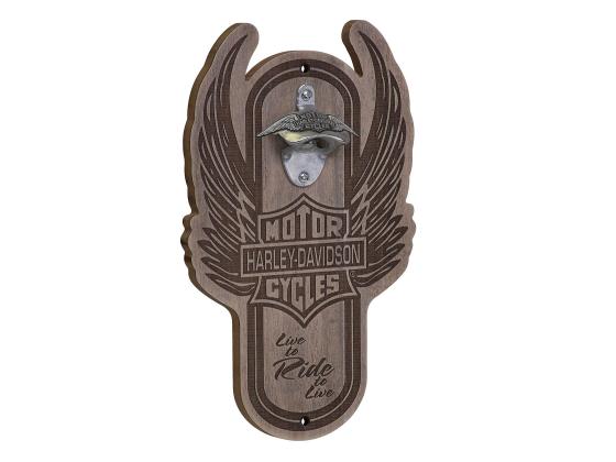 H-D" Flügelstangen- und Schildmagnetischer Flaschenöffner mit lasergraviertem Holzschild und integriertem Magnetverschluss. Öffnen Sie einfach Ihre Flasche mit dem speziell dafür vorgesehenen Öffner und beobachten Sie, wie der Verschluss am Magneten hängen bleibt! Zwei Montagemöglichkeiten: Magnetische Befestigung an jeder Metalloberfläche oder Wandhalterung mit beiliegender Hardware. Abmessungen: 21 cm x 33 cm x 4,1 cm