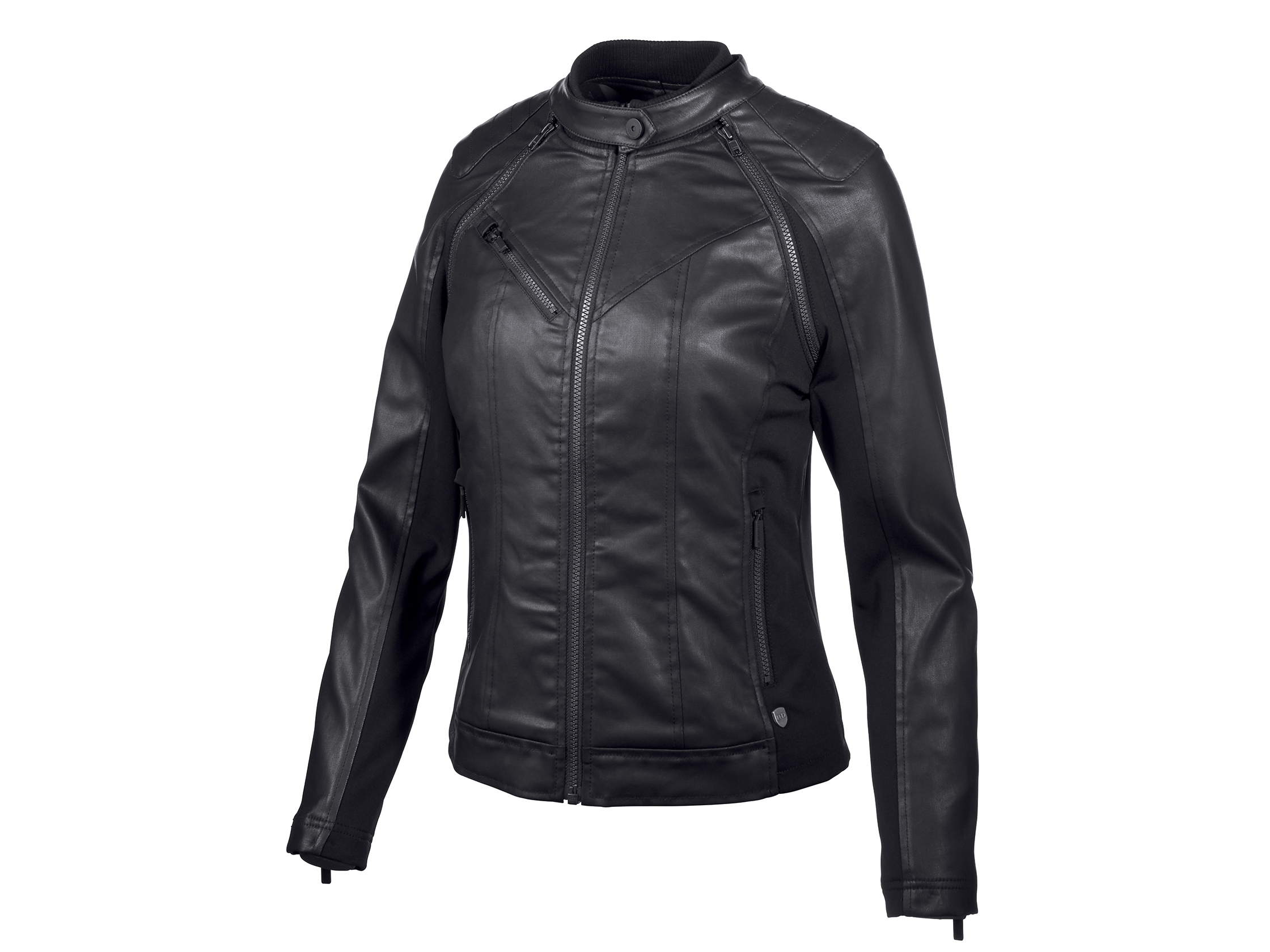Halten Sie sich mit der Jacke Coated Denim Convertible Jacket warm. Innovative Zip-off-Ärmel verwandeln die Jacke in eine Weste für vielseitige Einsätze bei kühlerem oder wärmerem Wetter. Seiten- und Ärmeleinsätze an den Seiten folgen allen Ihren Bewegungen. Und sehen Sie sich auch die Lederakzente an, die dieser legeren Damenjacke ein elegantes Finish verleihen.