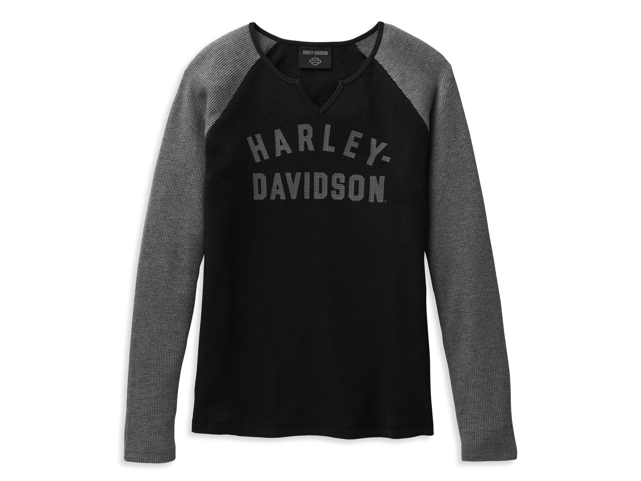 Das Hallmark Thermal Knit Top steht für Gemütlichkeit. Dieses langärmelige Oberteil für Damen ist aus einer Thermomischung aus Baumwolle und Polyester gefertigt und wärmt bei kühlem Wetter. Zu den mädchenhaften Details gehören der gekerbte Halsausschnitt und der abgerundete Saum. Sportliche Kontraste werden durch den klobigen Schriftzug und die kontrastierenden Raglan-Ärmel gesetzt.